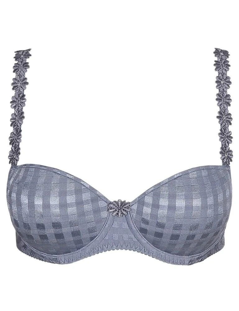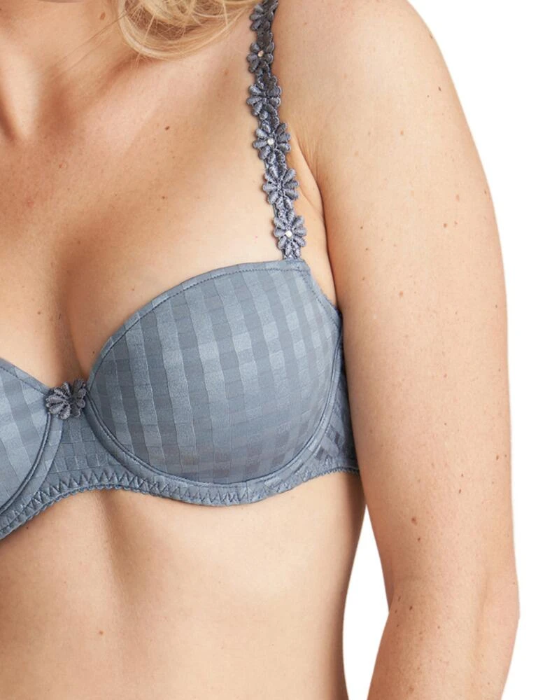 The popular Marie Jo Avero bra is now available as a balcony bra. Boost your bust in luxury fabrics. This bra is padded and underwired for a natural-looking lift. The cups are smooth and seamless for comfy all-day wear. It is all in the details with this bra as the cups feature a subtle check pattern which reflects the light for a stunning glow. The shoulder straps make this bra stand out from the crowd as they feature floral applique. You can also wear the straps as a halterneck or classic design.