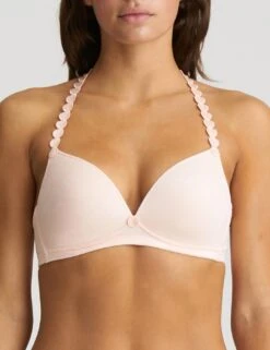 A youthful spin on the beloved classic – this Tom bra from Marie Jo is sure to become a new favourite. The extremely comfortable design consists of foam cups arranged in a flattering triangle style, accentuating your decolletage. The deep neckline makes it also easier to wear this bra with the more revealing outfits. Moreover, thanks to the smooth material, the bra remains invisible under clothing. The lack of underwire makes it incredibly comfortable to wear. The simplistic design is offset by the intriguing round pattern on the adjustable straps, which can be worn over the shoulders or as a halterneck.