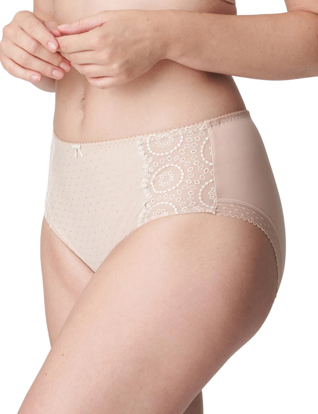The Osino full briefs by Prima Donna add a glamourous touch to a classic style. The comfortable mid-rise waist flatters the midsection. Soft fabric is adorned with delicate embroidery for a feminine feel. Full rear coverage preserves modesty and offers superior comfort. Finished with a charming bow on the waistband.