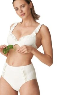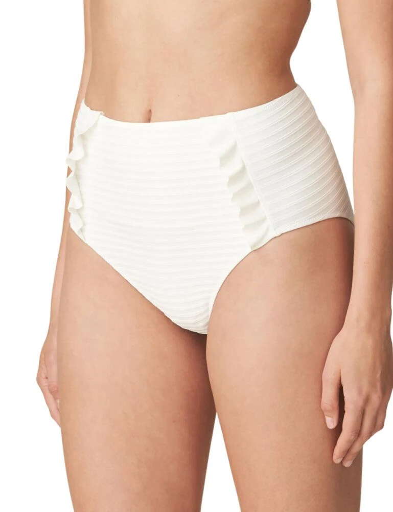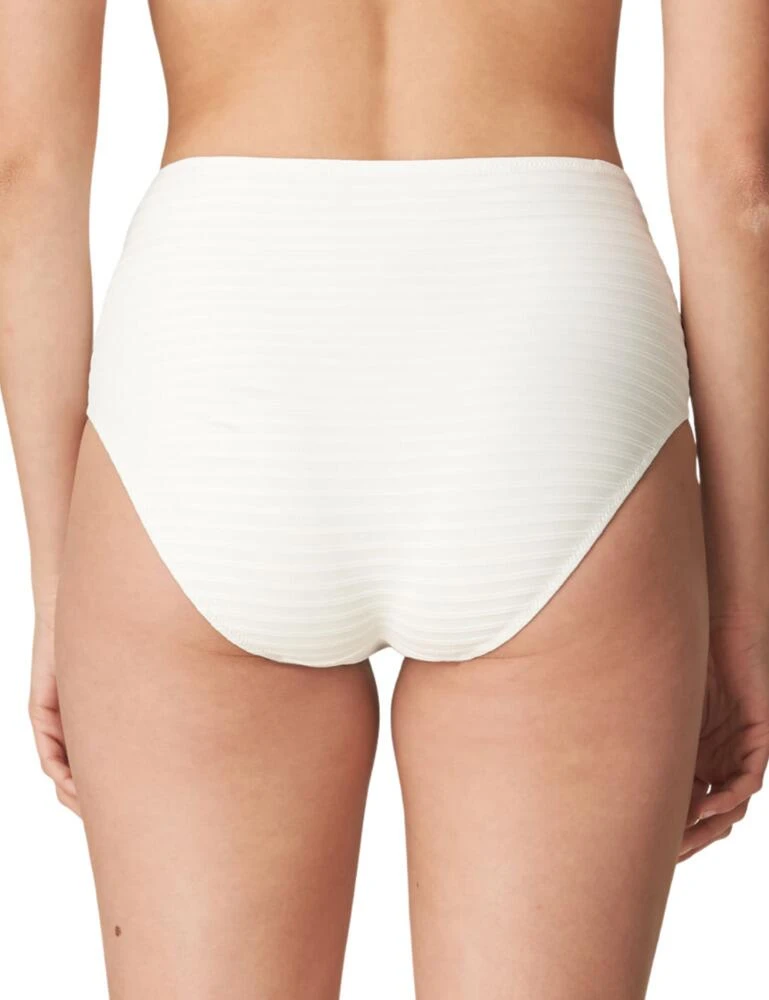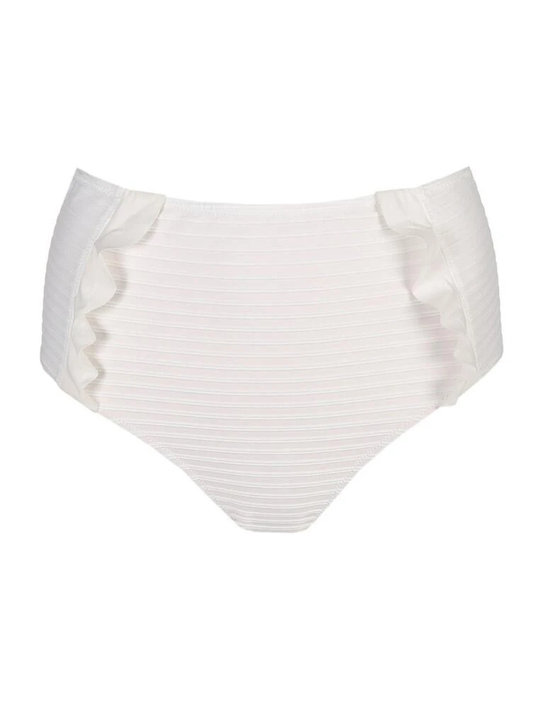 Complete your swimwear look with these Marie Jo full briefs from the Celine collection. The high waist and subtle stripes give the briefs a retro look. With ruching just on the hips to add a playful touch. Whilst covering your tummy the briefs also accentuate your waist giving you curves we all wish for. Perfect for lounging around the pool, paired with matching coordinates for a stand-out from the crowd look.