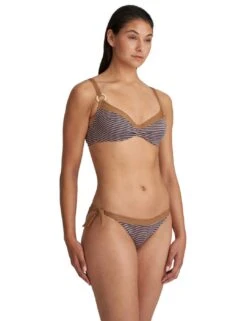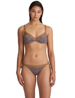Transform your summer wardrobe with the Marie Jo Saturna side tie bikini brief. This flirty, low-rise style and medium rear coverage are perfect for a beach-ready look that’s both comfortable and stylish. This bikini brief features a classic striped design guaranteed to make you stand out from the crowd. The statement glittery waistband and side ties add a touch of luxury and timeless sophistication, elevating your look to the next level. Make sure you pair it with the matching bikini top for a complete head-turning look.