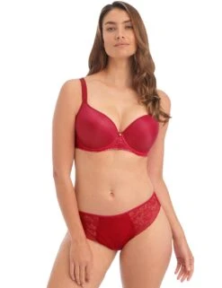 These beautiful Brazilian briefs from the Ann-Marie series by Fantasie are the perfect balance of comfort and class. Intricate lace runs from front to back, covering the bum in a semi-sheer style with complete exposure to the skin underneath which creates a sensual look. On the middle front panel lies an opaque material that makes you feel less exposed and more protected, appearing just as elegant as the rest of the piece with ornate detailing running across the entire opaque piece. Low-rise waist with moderate rear coverage, wear this stylish brief every day along with the matching bra’s from the same range to really make that fashionable statement whether you’re entering the bedroom for a fun night in or meeting the girls for a catch-up.