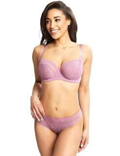 The Imogen collection by Panache is the perfect combination of style and everyday comfort! This Brazilian brief is crafted from soft stretch semi-tulle with lace trims for an added feminine detail. The classic Brazilian shape offers a comfortable mid-rise waist and cheeky rear coverage. Team with matching lingerie from the Imogen collection for a chic coordinated look.