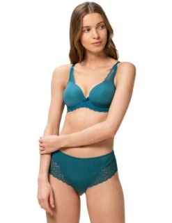 The Amourette Spotlight range by Triumph introduces this cute underwired bra that will leave you feeling incredible. It features a supportive underwire, padded cups, and allows for a custom fit from the hook and eye closure and adjustable straps. The bra provides a modern look with soft plain opaque cups and graphical floral lace at the under band and straps. Made complete with a centre flirty bow. A matching brief is available to create a fully coordinated look.