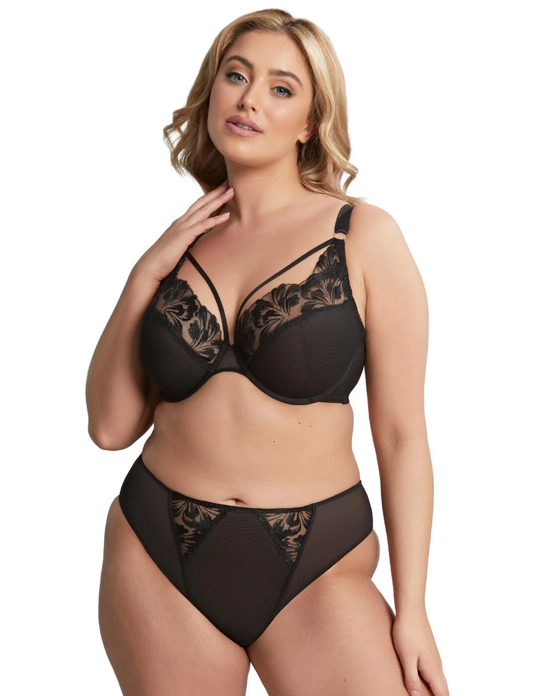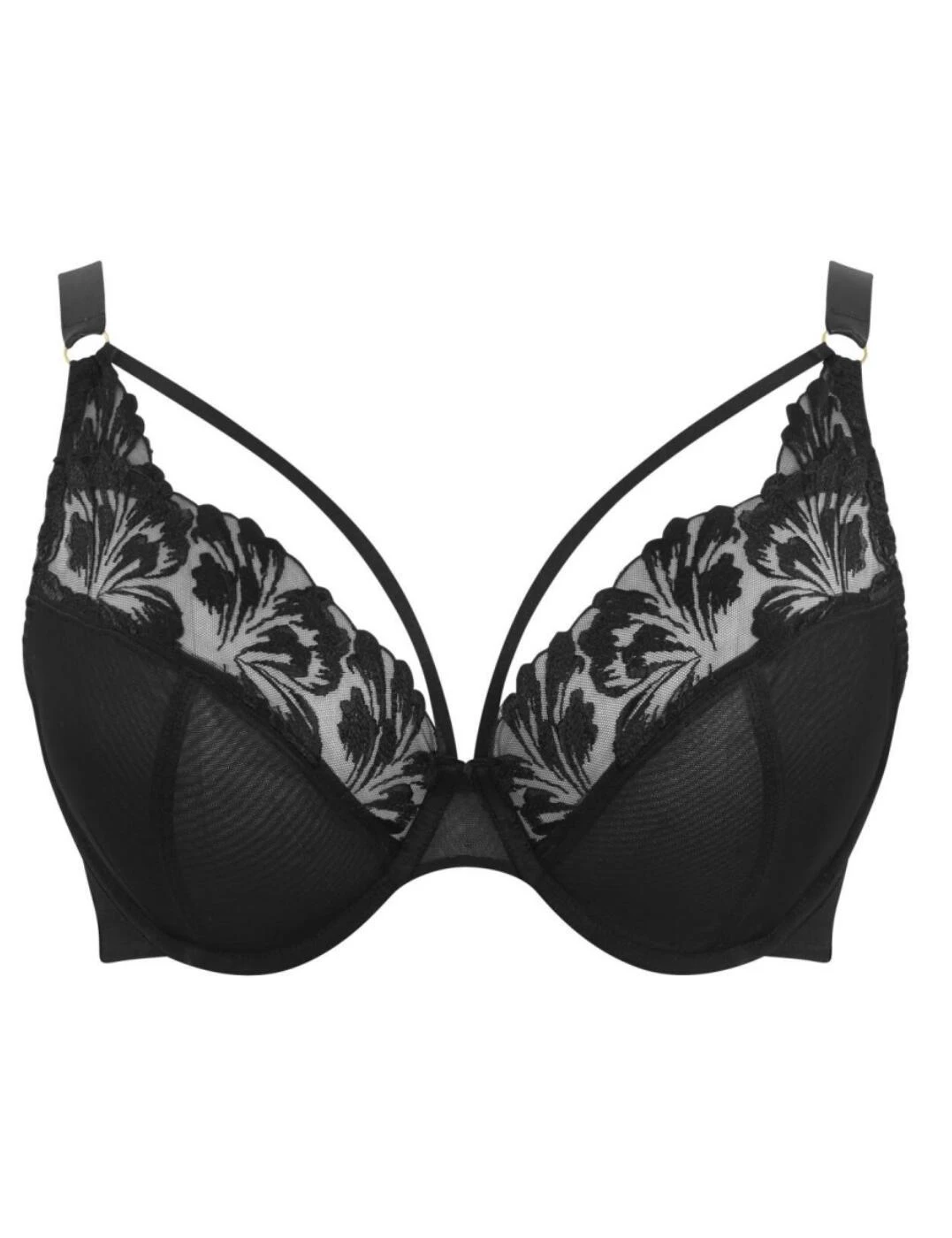 Flaunt your assets with the Jaida plunge bra from Sculptresse by Panache. This striking bra is the perfect addition to your flirty lingerie collection. Feminine lace trims with large floral embroidery show an alluring glimpse of skin. A plunging neckline highlights your curves which are accentuated by decorative straps. Soft and opaque lower cups preserve modesty and comfort and give you a smoother appearance when worn under clothing. Underwiring gives you a natural lift and all-day support. Pair with matching lingerie for a coordinated look.