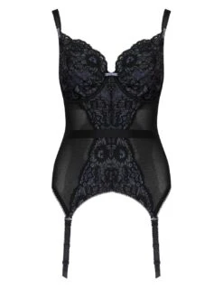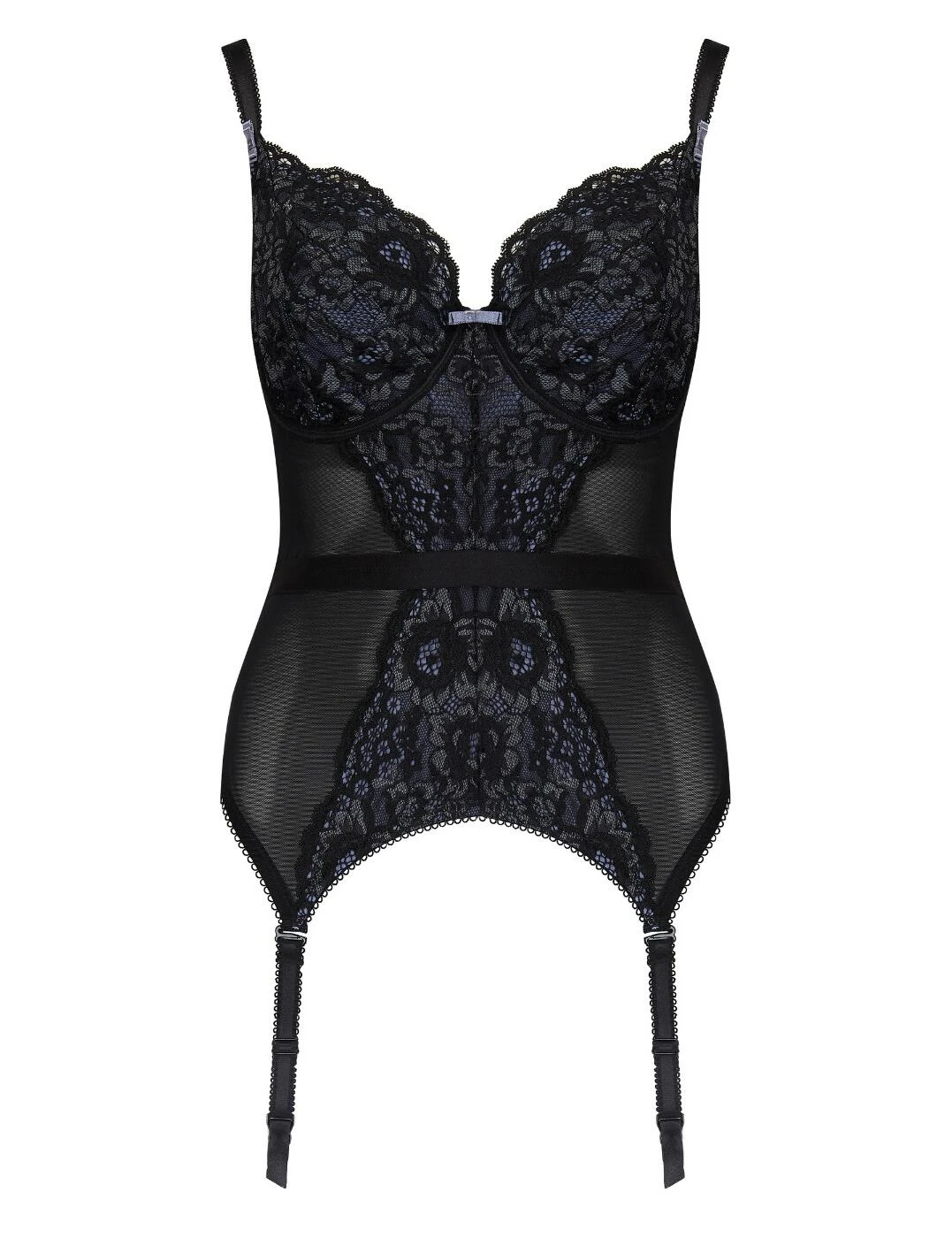 The Opulence collection by Pour Moi flaunts the utmost indulgent and sexy statement lingerie. This Basque has a luxurious lace overlay with contrasting semi-sheer tulle material that contours highlights your curves. An elasticated waistband detail cinches your waist combined with a corset style design for the shape enhancing silhouette. The added underwiring offers added support and uplift. Adjustable straps and suspender straps create a comfortable individual fit. Wear with matching lingerie from the Opulence collection by Pour Moi for a statement sexy look.