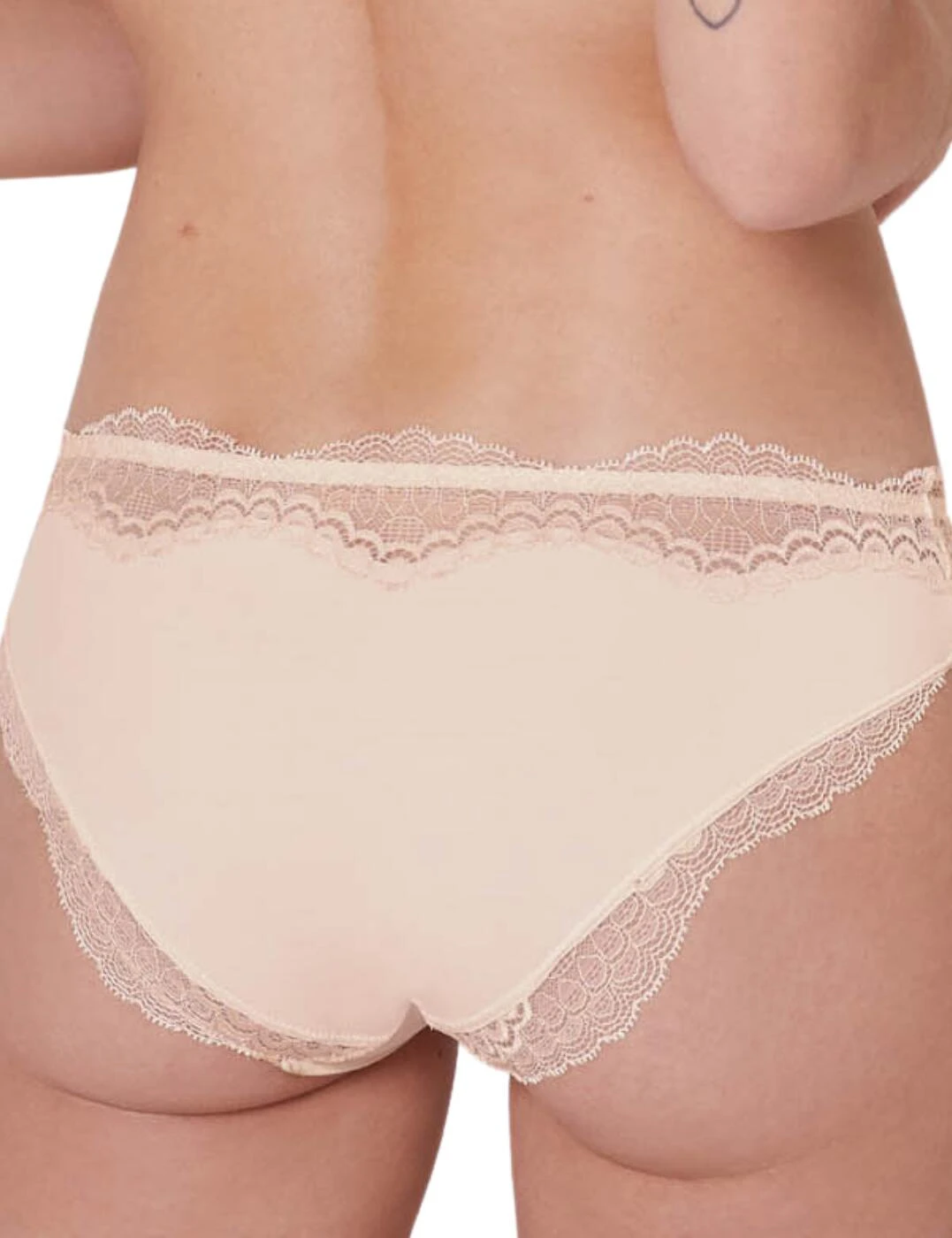 - Delicate lace panels on the waistband and back trims