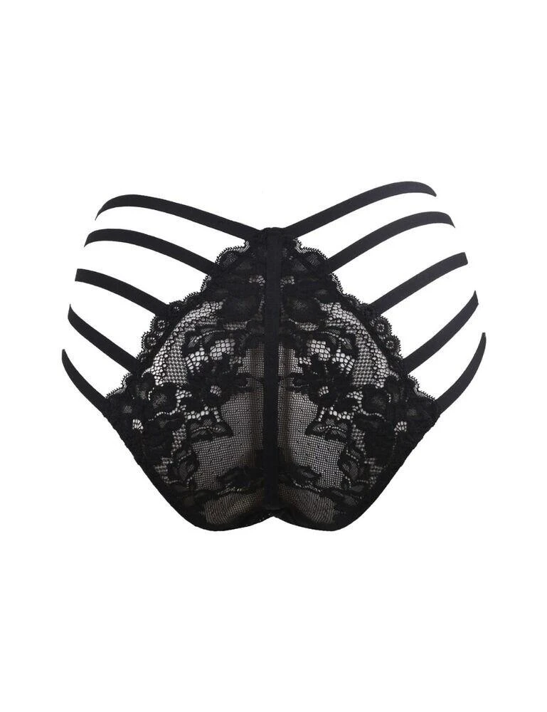 Look incredibly sexy in this strapped brief from the Statement range by Contradiction by Pour Moi. This brief echoes the rest of the Statement range, featuring caged straps which make up most of the brief and offer a ‘barely there’ look. Gorgeous embroidered lace covers your modesty at the front and back of the brief, while still offering minimal coverage throughout. Gorgeous metallic accents also add extra stylish details to this brief. Pair with matching items from the Statement range for a look guaranteed to turn heads.
