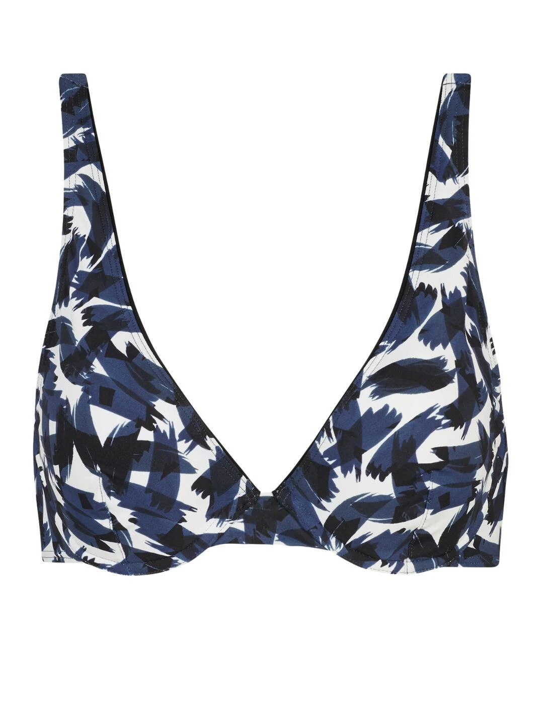 The Sonia collection from Simone Perele offers a modern look on the traditional swimwear choices. This bikini top features a deep plunging neckline, which will surely garner you some flattering attention. The underwired cups are padded with a stylish push-up effect, shaping and supporting your bust so that your curves look beautiful but you are not compromising on a comfortable time on the beach. The modern trendy style shows in the form of the captivating brushstroke pattern on the elastic material, giving you a stylish eye-catching look.