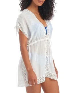 This tunic from the Sunsape collection by Freya is the perfect coverup from the beach to the bar. The crochet trim detailing adds a stylish bohemian look to the classic minimal design. The lightweight fabric creates a cooling effect and the adjustable tie waist ensures a feminine silhouette.