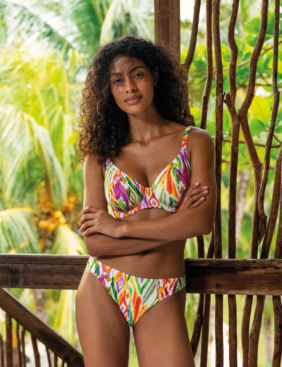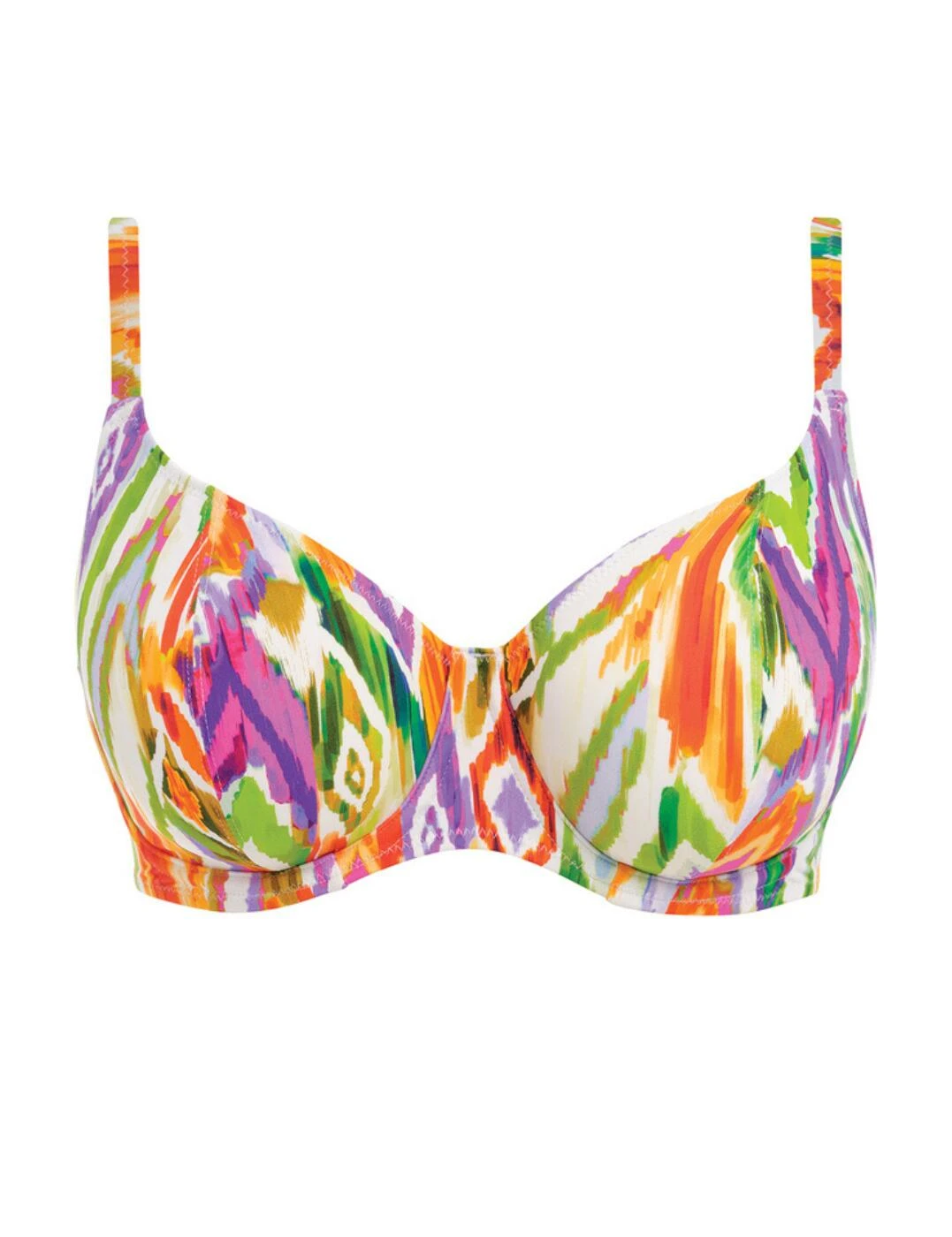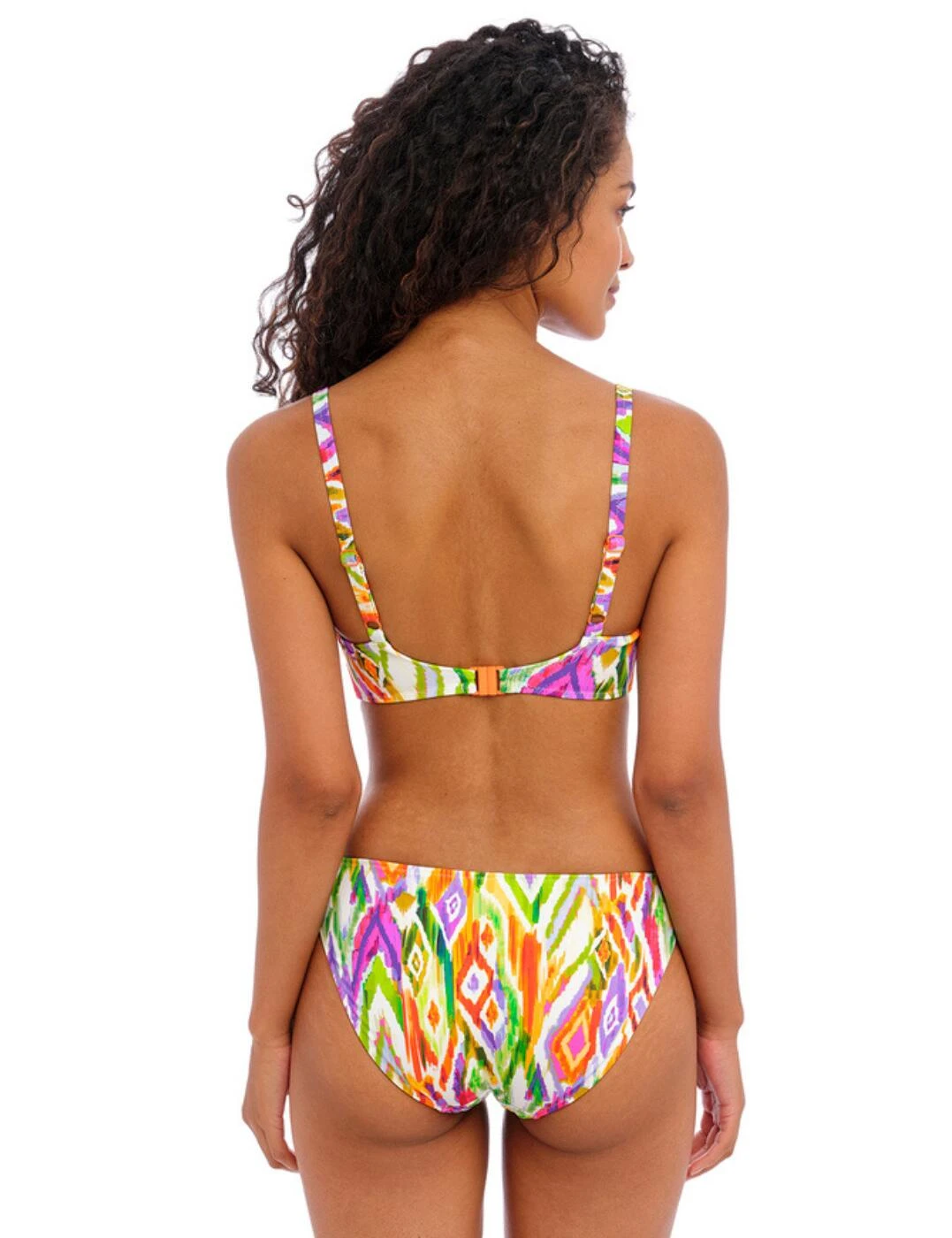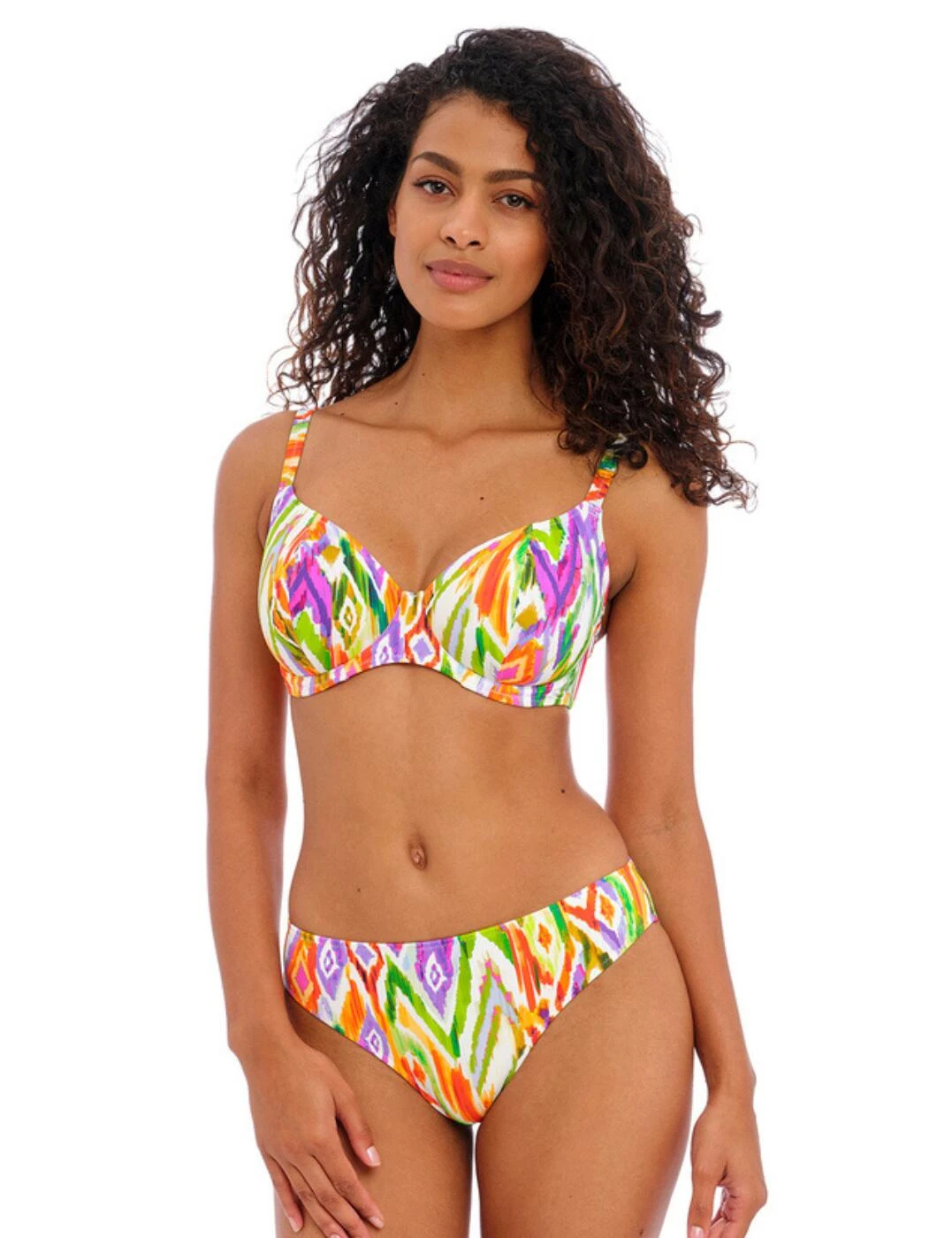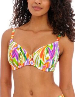 Hit the beach with Freya’s Tusan Beach range this season. Brighten your swimwear collection with this striking bikini top, including a bold Aztec print that will be hard to miss! Designed with underwiring to give you some shape and support during any holiday activities and the low plunging neckline gives a flirty view of your bust. Adjust the shoulder-length straps to your preference, feeling secure and comfortable after closing the classic back clasp. Partner this gorgeous bikini top with other available items in the Tusan Beach collection for all those holiday feels.