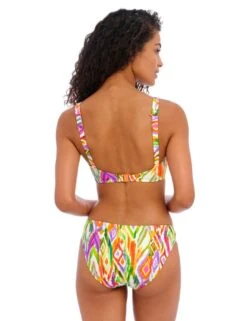 Treat yourself this season with Freya’s Tusan Beach range. Bathe by the pool in this eye-catching tie-dye print inspired by Aztec designs, resulting in an adventurous bikini top. Featuring a low plunging neckline for a flirtatious flair, especially with the powernet lined cups for shaping and supporting your bust. Be creative with the J hook feature which lets you choose the strap style of the bikini, why not turn that classic back into a racer style? Adjust the shoulder straps to your comfort and complete by closing the back clasp for the perfect fit. Race to style these with other available items in the Tusan Beach collection.