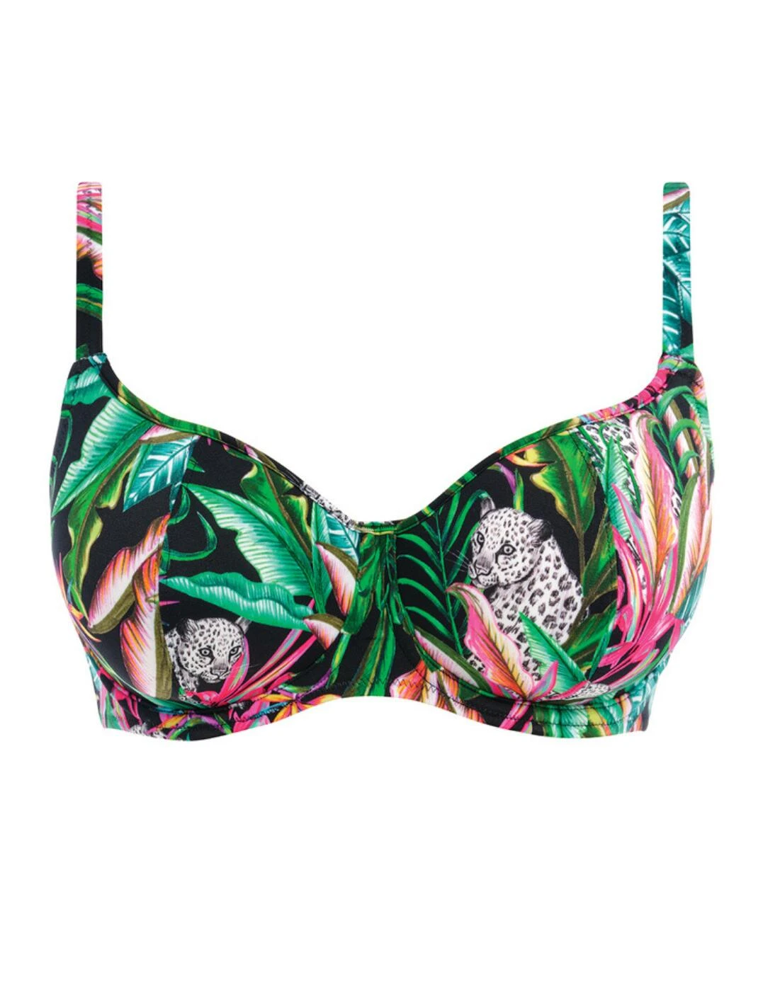 Embrace your wild side with Freya’s Cala Selva collection this season. Switch out your basic swimwear for this bright and bold botanical jungle-inspired bikini top. Featuring a sweetheart neckline to flatter your bust and underwired, padded cups for a rounded finish. The adjustable shoulder straps ensure a customisable fit and this piece is secured at the rear with the back clasp for a secure fit. Complete the look with the available matching items from Freya’s Cala Selva range today.