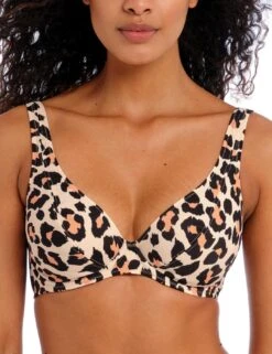 Feel fiercely striking in Freya’s Animal Instinct collection this season. Featuring a playfully low plunging neckline with an elongated apex for a teasing look by the poolside. The underwired structure with Powernet lined and non-padded cups all enhance your beautiful shape and offer support but are still comfortable for all-day wear. Modify this piece into your preferred style using the J hook for easy conversion into a racer back and adjust the shoulder straps to your desired fit. Pair this top with the coordinating bikini briefs also found in the Animal Instinct range to create your own irresistible set.