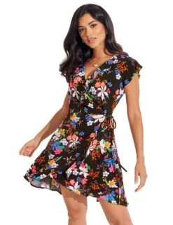 Update your wardrobe with this frill wrap breach dress to ensure you’re summer ready. From Pour Moi, it brings this feminine piece that is perfect for a versatile item to wear both as a cover-up at the beach or a cute nighttime look, a holiday essential! This gorgeous dress is covered in an opaque fabric that ensures a breathable feel and is made from sustainable Ecovero fabric making it more natural and less harmful to the environment. It has a wrap front which ties at the waist with frilly detailing down the neckline and around the bottom. The dress sits just above the knee and has mini sleeves.