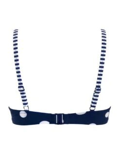 Add some pin-up-inspired glamour to your next vacation with Pour Moi’s Beach House collection. This nautical bikini top is the perfect addition to your carry-on luggage with the iconic polka-dot design and gorgeous contrasting bow detailing adding an unforgettably chic flair. This piece features underwired, non-padded cups for a supportive fit that embraces your natural curves. The straps are adjustable for a customisable fit and this piece is secured at the back with a classic back clasp fastening for a snug fit. The plunging neckline accentuates your beautiful figure for that stunning finishing touch.