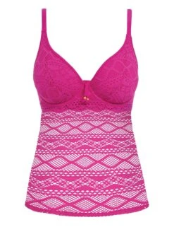 The Freya Sundance tankini top is the perfect addition to your swimwear wardrobe this season! Combining stylish design with superior fit and quality, it is sure to make you feel confident and fabulous. Crafted with an incredibly detailed crocheted pattern, this tankini top offers great support with its underwired construction and foam-padded cups that shape and flatter your bust. The low plunging neckline along with the sheerness of the body creates a cheeky and modern look. And don’t forget the adjustable straps which can be worn halter-style or across the shoulder, adorning them is the beautiful metal bead detailing for a finishing touch. Thanks to its classic back clasp closure, getting ready for the beach has never been easier. Don’t forget that matching coordinates are available in the Sundance collection too!