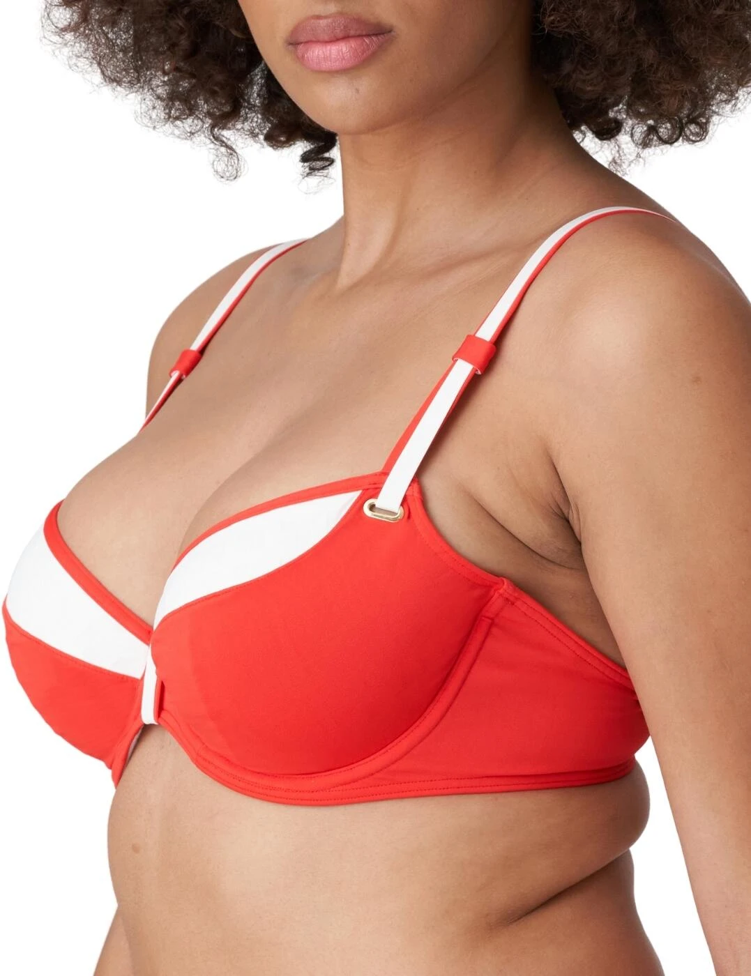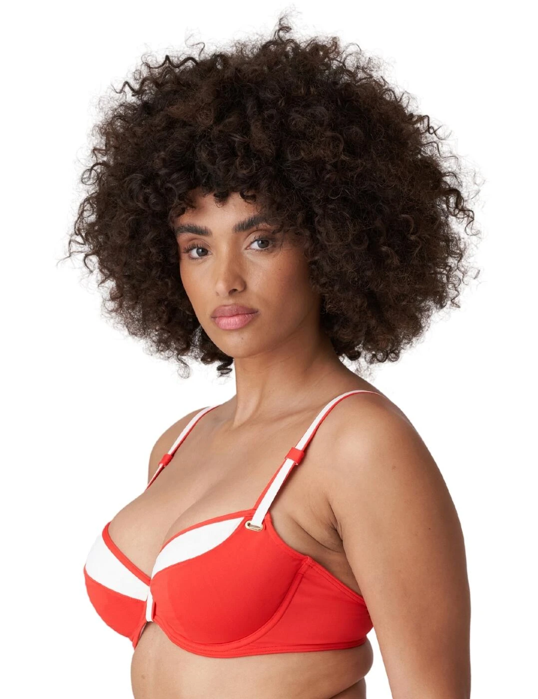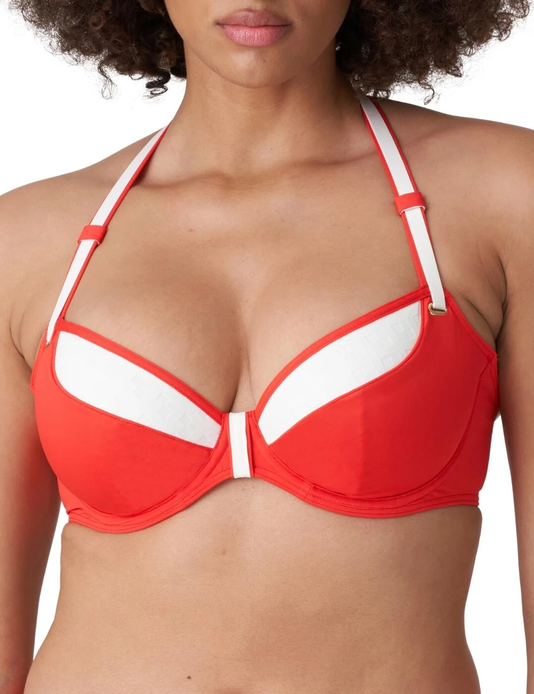 Add an elegant new look to your swimwear collection with the luxurious Istres collection by Prima Donna. This contrasting plunge bikini top is convertible and allows you to wear it in a classic over-the-should style or a flirty halterneck to emphasise the plunging neckline and cleavage. The non-padded cups create a natural shape and underwiring offers added support. The classic clip fastening ensures a secure fit. Complete the look with stylish matching swimwear from the premium Istres collection.
