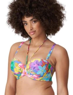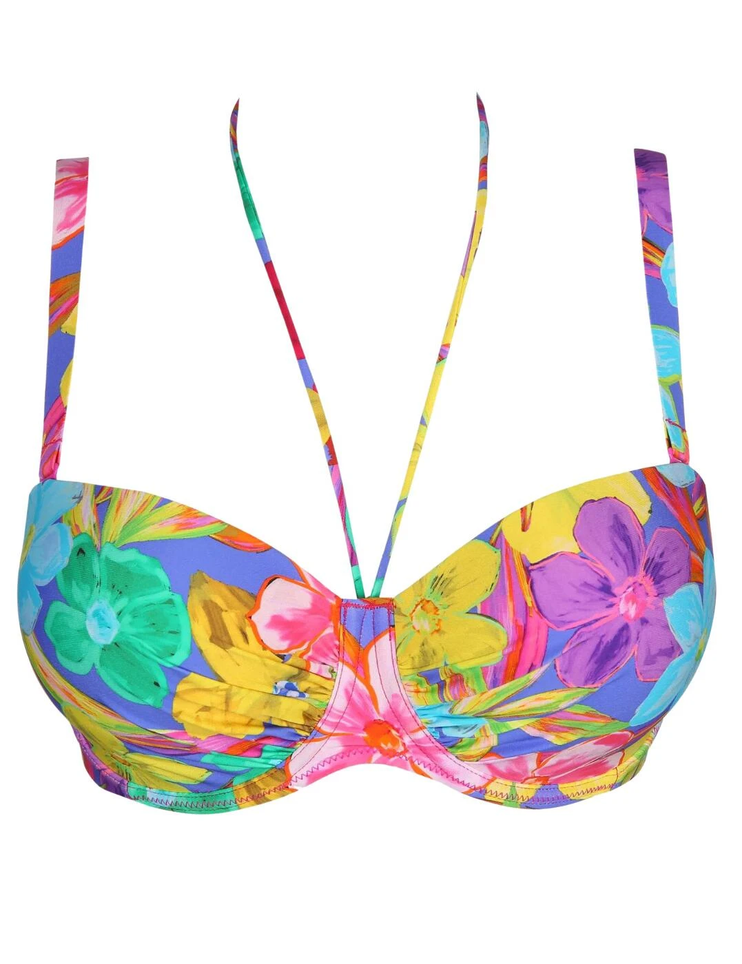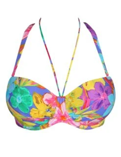 Prima Donna’s Sazan line introduces this unique and flattering strapless bikini top which is definitely a must-have in your luxury swimwear collection. This piece has padded cups and underwiring which ensures support and uplift, showing off all those amazing curves. The innovative design has removable and convertible shoulder straps creating a fashionable look and a classic clasp fastening for a secure fit. The decorative strappy detail accentuates your cleavage and a feminine floral print finishes off this look perfectly. To complete this swimwear set, take advantage of the stylish matching coordinates available from Prima Donna’s Sazan range.
