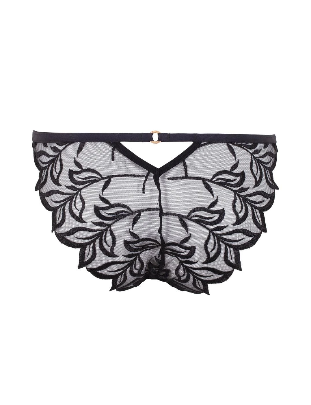 Bless your lingerie drawer with this cheeky little brief by Bluebella. From the Isadora range, this low-rise brief has all-over sheer mesh with a leafy pattern that creates a feminine look. It has string sides that lead round to the medium coverage rear that has a mini triangle cut-out underneath the waistband and this brief features gold hardware accents throughout. This brief matches perfectly with the other pieces from this range which are also available and allows you to create the ultimate flirty look.