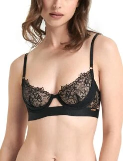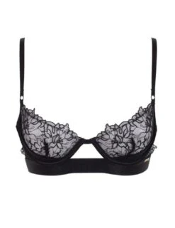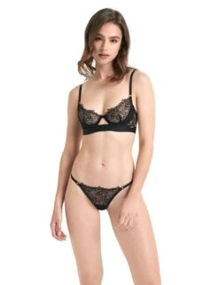 Look sleek and sensual in the Alanna range by Bluebella. Reach for this gorgeous demi-cup bra to add a modern edge to your wardrobe. The beautiful floral embroidery on the cups creates a feminine flair to this revealing look. Featuring underwiring and a wide underband for support with the non-padded cups adding comfort. Feel secure by adjusting the shoulder straps and the hook and eye closure to your own personal preference. Adorning the underband is a golden Bluebella tag for a chic detailing. Pair this piece with coordinating items in the Alanna collection for a seductive set to boost your confidence!
