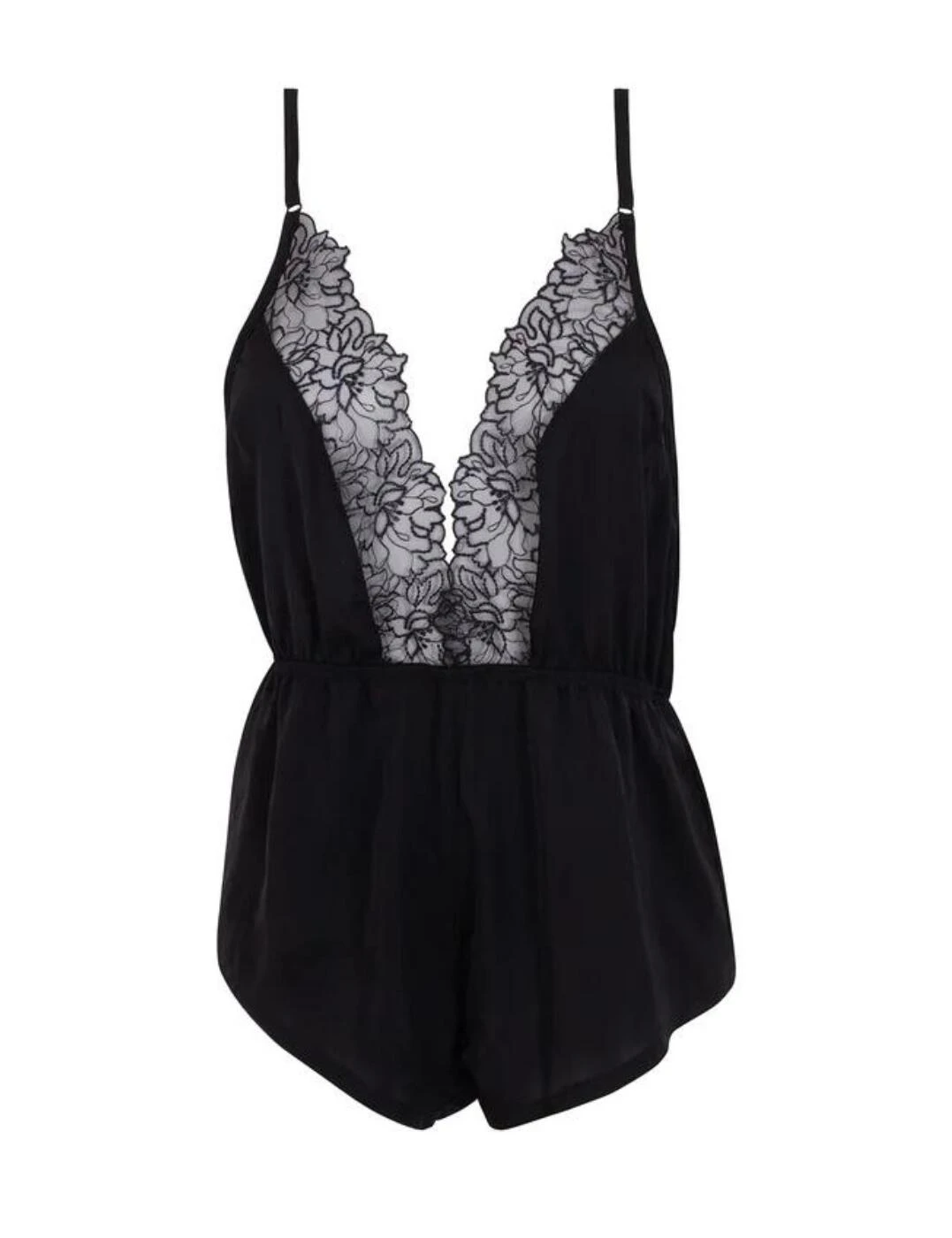 Flaunt your gorgeous silhouette in Bluebella’s Alanna collection. Add this playful satin teddy to your wardrobe this season, featuring a deep plunging neckline and this piece is lined with intricate lace detailing for a seductive flair. The elasticated waist flatters your curves while the moderate rear coverage ensures a comfortable yet playful look. Boasts a simple pull-on design for ease of wear and you are able to tailor the fit to your preference using the adjustable shoulder straps.