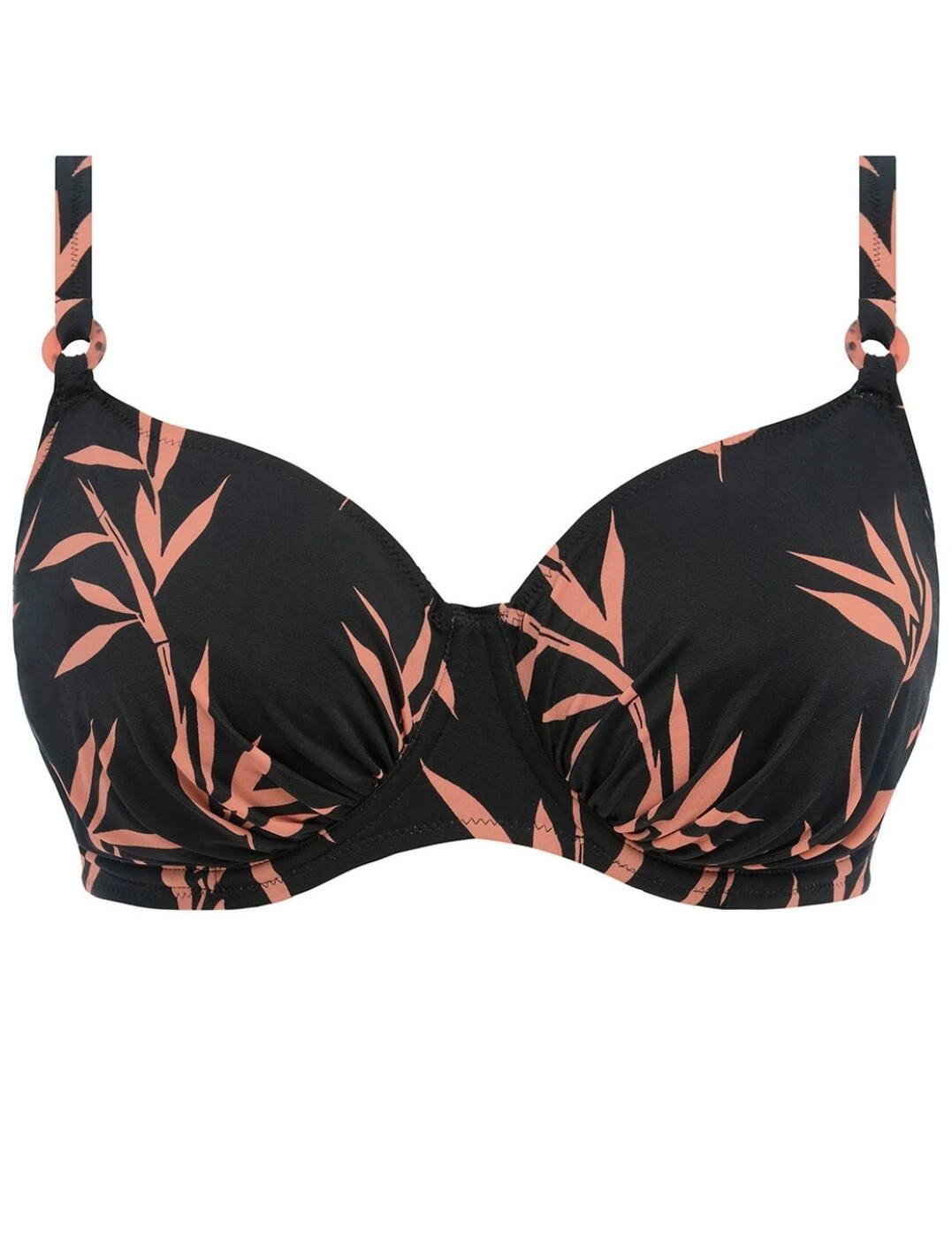 Introducing this stunning full cup bikini top that is a perfect addition to your swimwear collection from the Fantasie Luna Bay range. Concealed underwiring and non-padded cups create the utmost support and comfort. Clip fastening and adjustable straps are featured for a tailored fit for all your beautiful curves. Finishing off this design is the unique bamboo print and tortoiseshell ring details that are distinctive to the Luna Bay line. To complete this set, snap up the matching available coordinates.