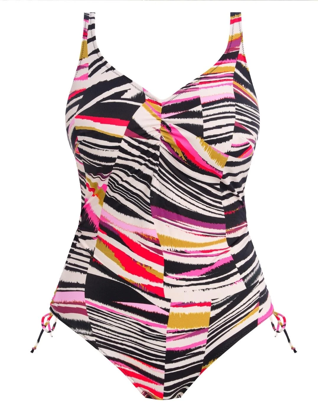 Feel fabulous this season with this must-have v-neck swimsuit from Fantasie’s stunning Sanoa Island collection. Non-padded and concealed underwiring this swimsuit provides the utmost support and comfort every day. Adjustable tie sides so you can alter it to your desired coverage. Fixed straps and a pull-on design with a low scooping back for ease of wear and effortless flirty look. A bold unique print for that flawless finishing touch to this perfect look.