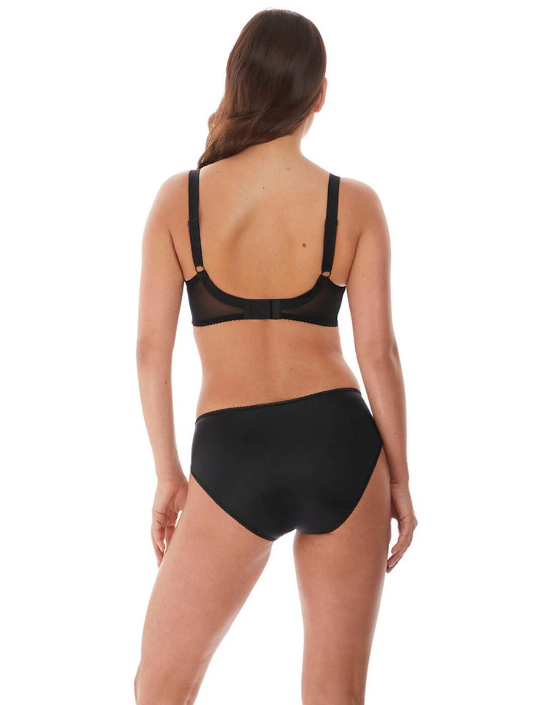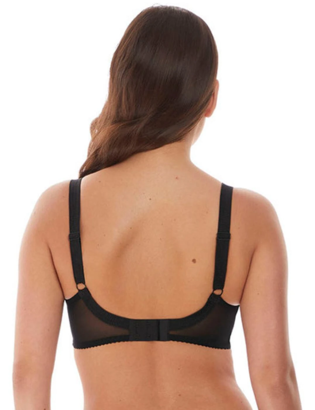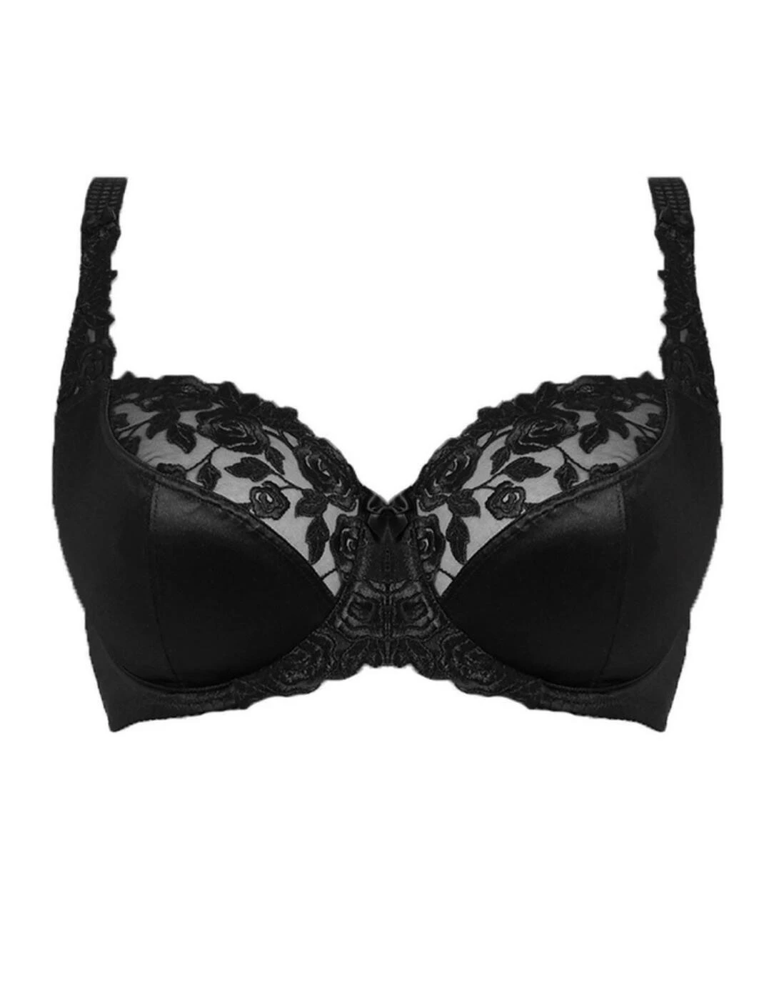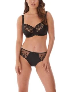 The Belle range by Fantasie brings this balcony bra that will instantly become your favourite piece. Balcony bras are much-loved due to their flattering cut that showcases your bust with three sectioned cups which provides great uplift and projection whilst giving excellent coverage. It allows you to create the perfect and comfortable fit with underwiring, adjustable elasticated straps and a hook and eye closure. The bra is crafted from soft silky fabric with an upper panel of semi-sheer beautiful Austrian embroidery which also runs along the straps and under band. Made complete with a mini bow in the centre.