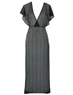 Embody poolside elegance with Freya’s Urban collection this season. This maxi beach dress is as gorgeous as it is chic with the maxi length and modern chevron print adding that glamorous finish. The semi-sheer design of this piece and flirtatious side slits mean you can keep cool whilst maintaining a flirtatious feel. An elasticated waistband allows for the perfect fit with each wear. This piece boasts floaty short sleeves for an airy feel.