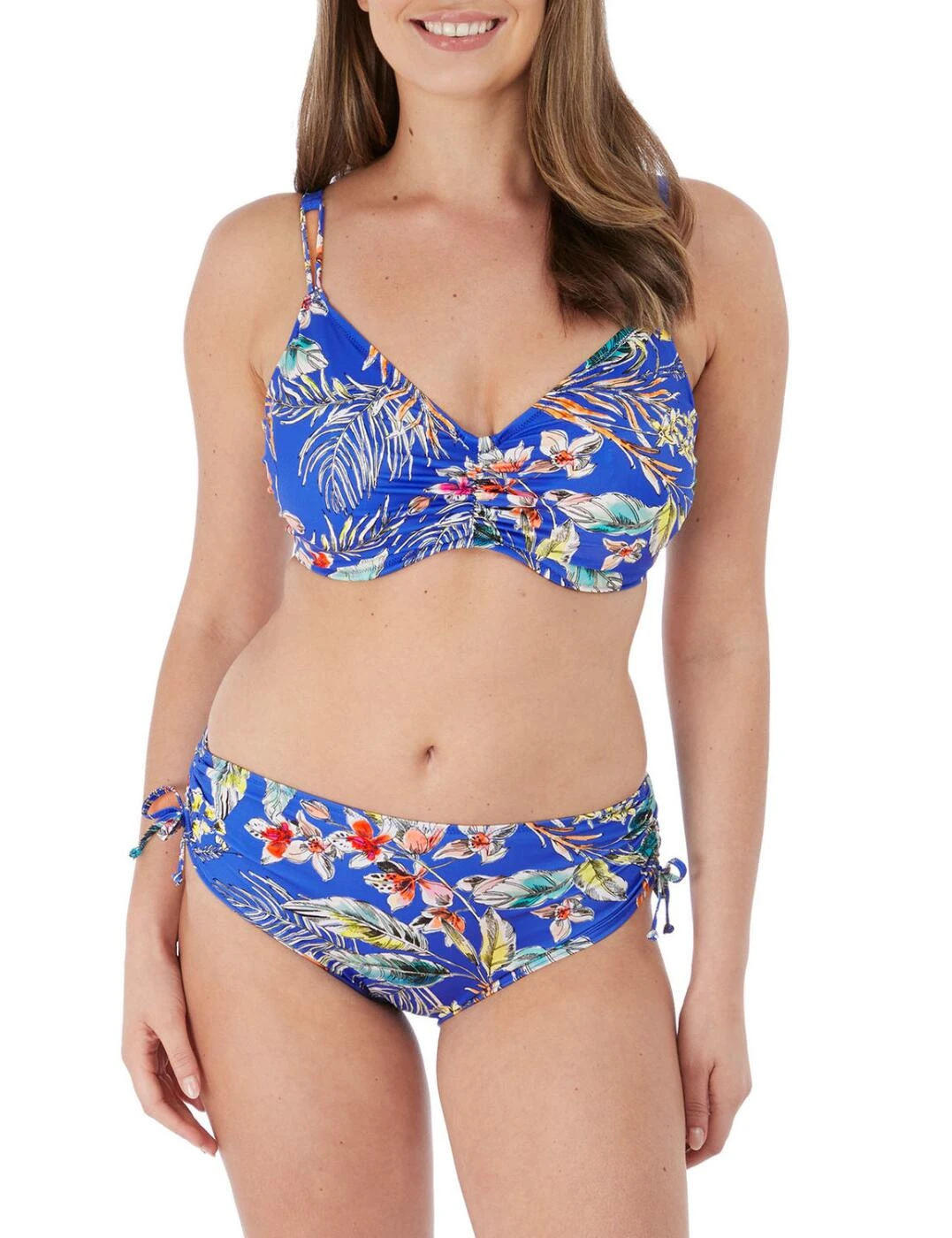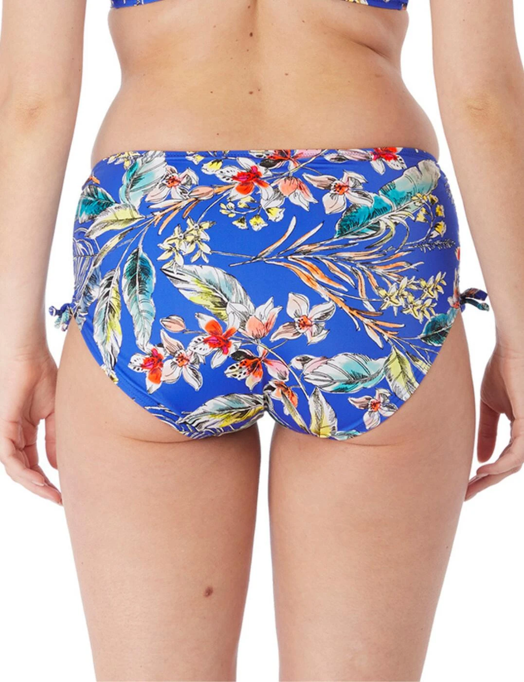 Enjoy all round comfort and coverage in this stunning bikini brief from the Burano collection by Fantasie. In a short style it offers a high-rise fit that sits comfortably along your waistline. A deepened waistband is created from low-cut legs, for a fuller front midriff coverage, continued on the rear for fuller rear coverage. Adjustable tie sides add a feminine touch, which allow you to ruche the sides and create a higher-cut leg style, and the illusion of elongated legs – a very elegant look. The fully lined fabric offers not only modesty within the brief but also that it is soft to the skin.