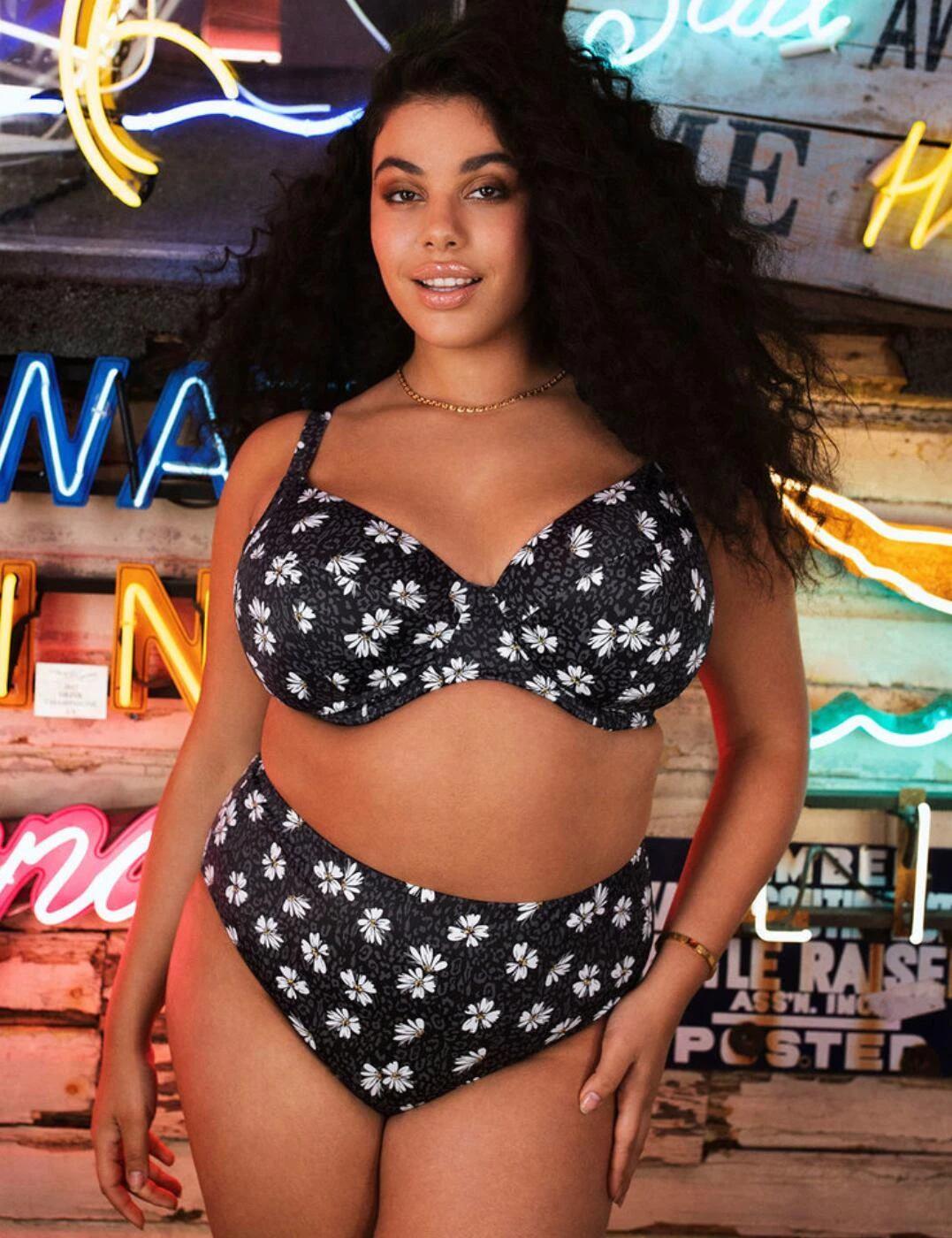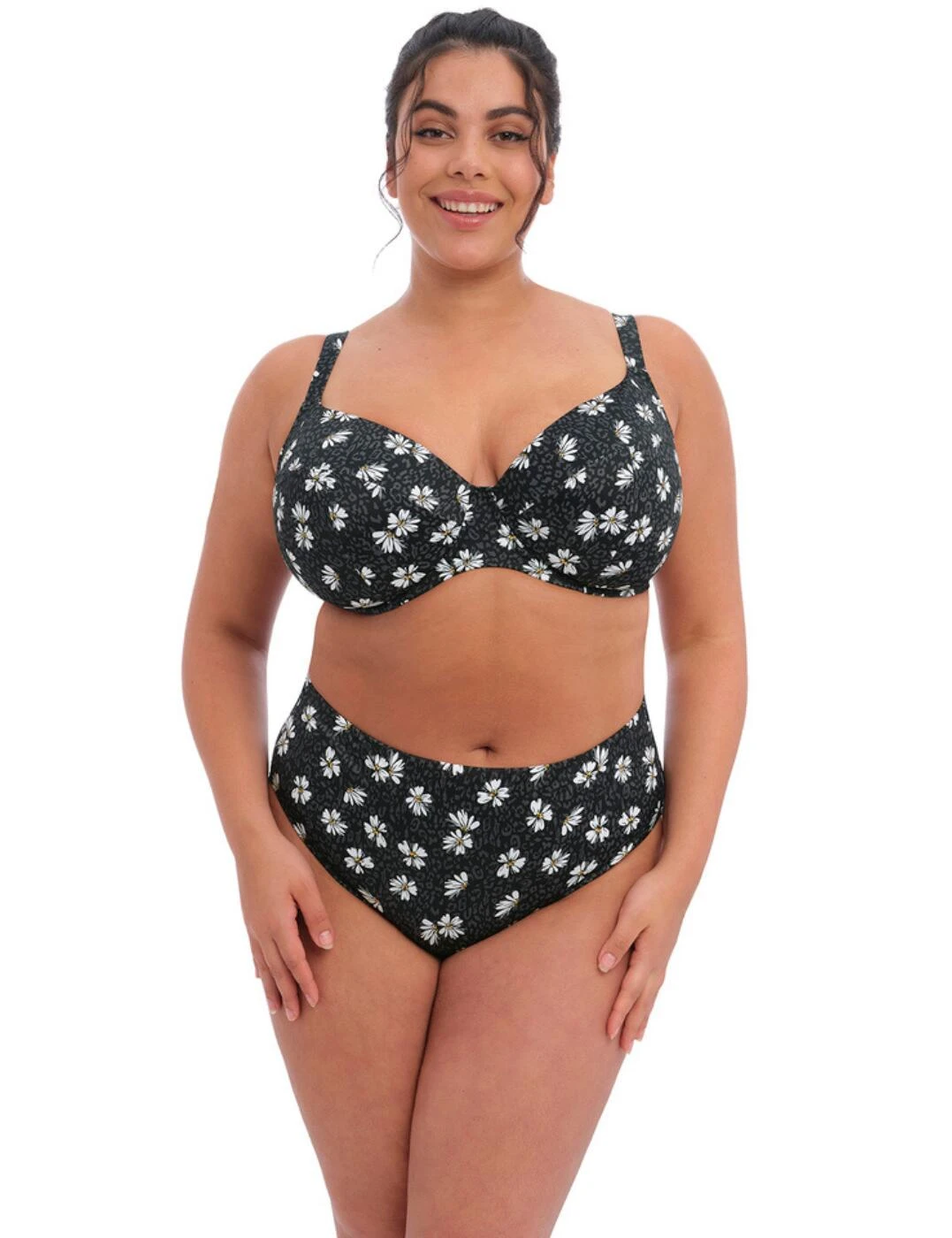 This plunge bikini top is a part of the Plain Sailing range by Elomi which is a holiday must-have. The Plain Sailing range brings an all-over fun and playful print on smooth and soft fabrics for a guaranteed comfortable fit. It ensures the same fit as Elomi always promises and provides great full coverage with supportive underwiring. The centre sits a little lower creating a plunging neckline that flatters your bust and showcases your incredible cleavage. It has fully lined non-padded cups that add additional light support. Create a perfect fit with adjustable straps and a clasp closure. Other items from the Plain Sailing range are also available for a fully coordinated beach look.