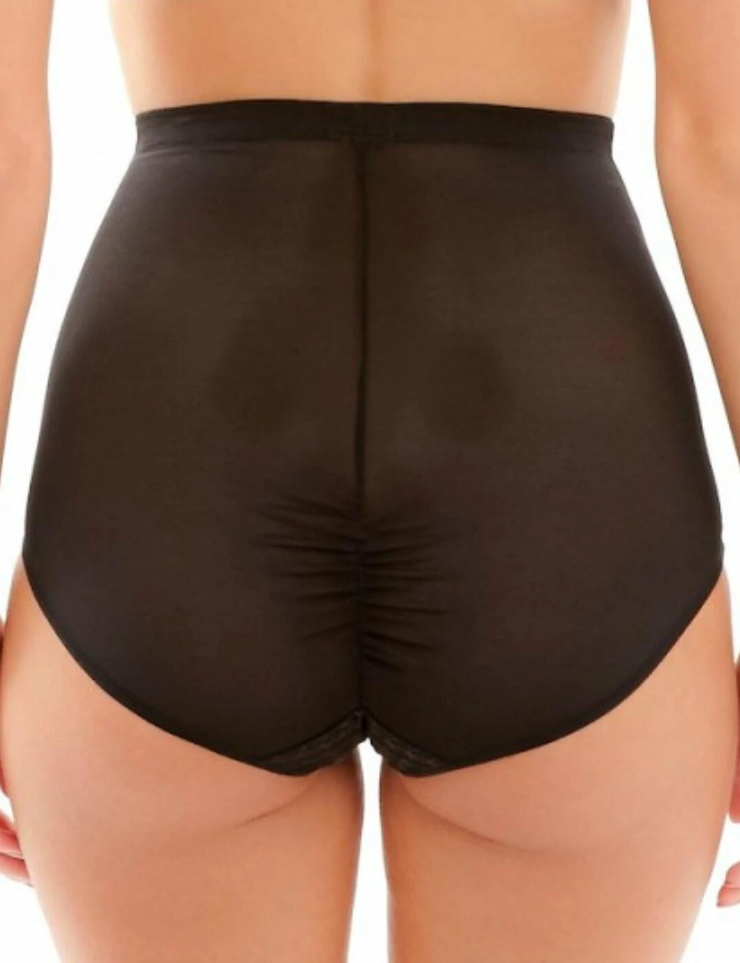 New to the Panache Envy lingerie collection is the high-waisted brief! Featuring a luxurious and interesting lace design, with stretch opaque floral lace at the front and semi-sheer jacquard side panels along with a sheer mesh at the rear. This brief is the ultimate wardrobe must-have with the high-rise waist and moderate rear coverage which feature ruching detailing to enhance your bum for a cheeky touch.Â