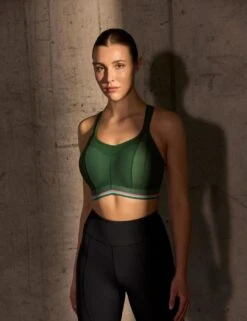 Get things moving with Panache’s Sport collection. This sports bra is non-wired allowing you to move without any restriction of movement, the perfect workout partner. This athleisure piece is as breathable as it is stylish with sporty stripe detailing on the underband and the contrasting seams on the cups and straps. Cups are full coverage making this sports bra perfect for any level of impact this season. Boasts moulded cups that are seam-free ensuring you a comfortable gym session with each wear. Straps are adjustable and can be tailored to your own desired fit. Fastened at the back with both a hook and eye closure and a magnetic rear clasp that ensures your bust will be safe and secure all day.