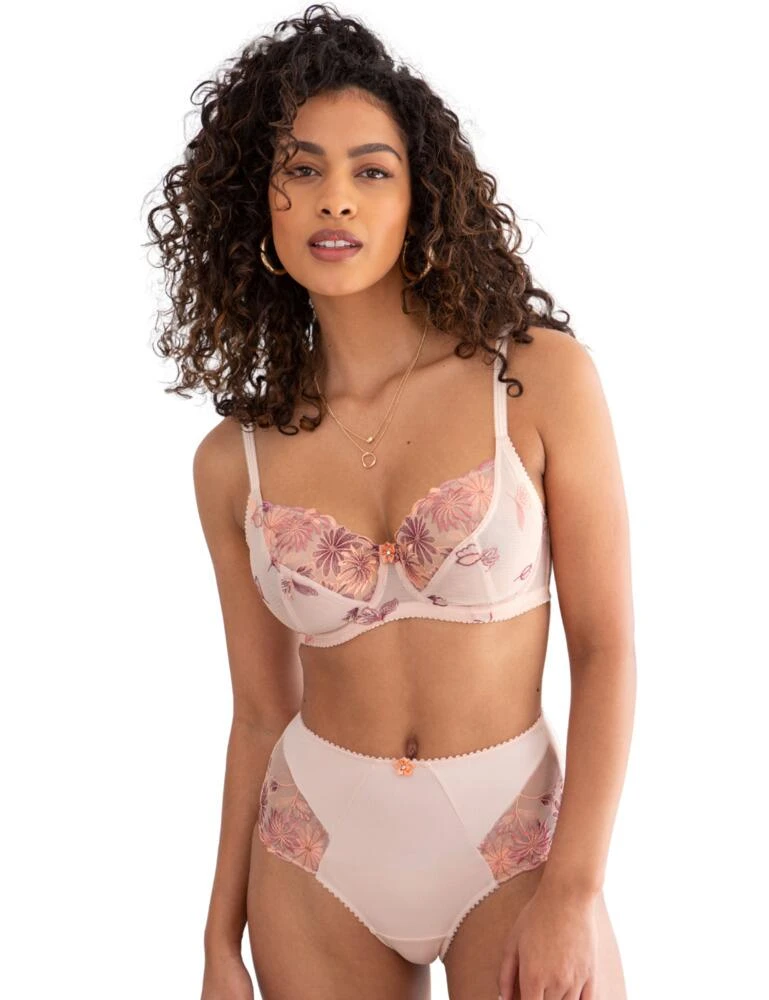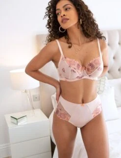 Update your lingerie collection with this gorgeous full cup bra from Pour Moi’s St Tropez range. Featuring full cups for amazing coverage adorned in elegant floral embroidery creating a gorgeous everyday bra. The cups are non-padded for a natural look and offer amazing support with underwiring. Soft scalloped edging adds an elegantly feminine touch, finished with a delicate satin bow in the centre. Ensure you get the right fit with adjustable straps and hook and eye closure. Pair with matching items to complete the look.
