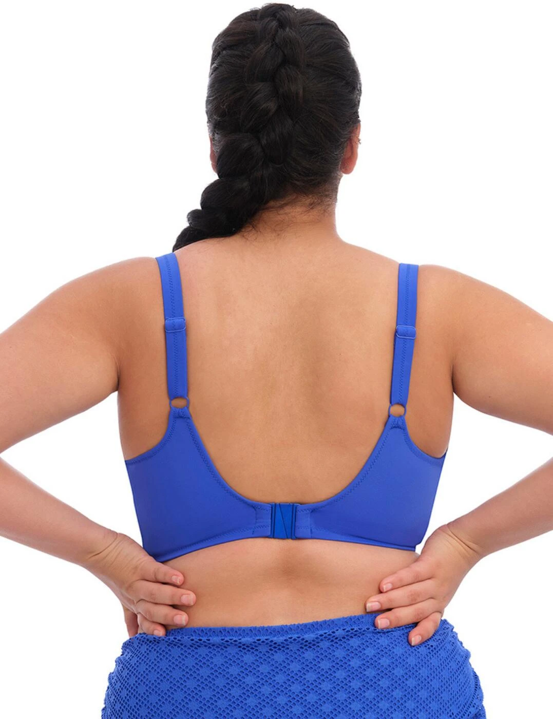 Dreaming of new swimwear to fit your body incredibly with a luxurious and feminine style? Of course, you are, so look no further than the Bazaruto range by Elomi. It introduces this underwired plunge bikini top which provides great full coverage that is fully lined for a light but supportive fit. The plunging neckline showcases your cleavage for a flattering look. Along with the underwire and lining, it also has a powernet back lining for extra support. It allows you to create a perfect fit with adjustable straps and a clasp closure. The bikini top is covered in a crochet opaque fabric for an elegant look.