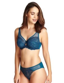Look and feel seductive in the new Arla Balcony Bra by Panache! This bra is underwired to offer you a wonderful lift, support and comfort. It is non-padded to provide a natural look and make you feel stunning. The noir color with gold details offers a luxurious look that will make you look fabulous. The bra has a mixture of refined laces and tulles to create a striking and stylish look. The balcony bra comes with adjustable straps and hook and eye fastening to allow an individual fit. Pair with matching items to create a gorgeous new look!