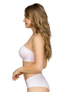 Simple yet effective, this Parfait wireless strapless bra is perfect under all your strapless outfits. The single coloured bra wraps around your bust in a bandeau style with criss-cross detailing over the centre of your bust. There is a hook and eye fastener at the back for a unique fit. Part of the Deco range you can see how it’s been inspired by art deco.