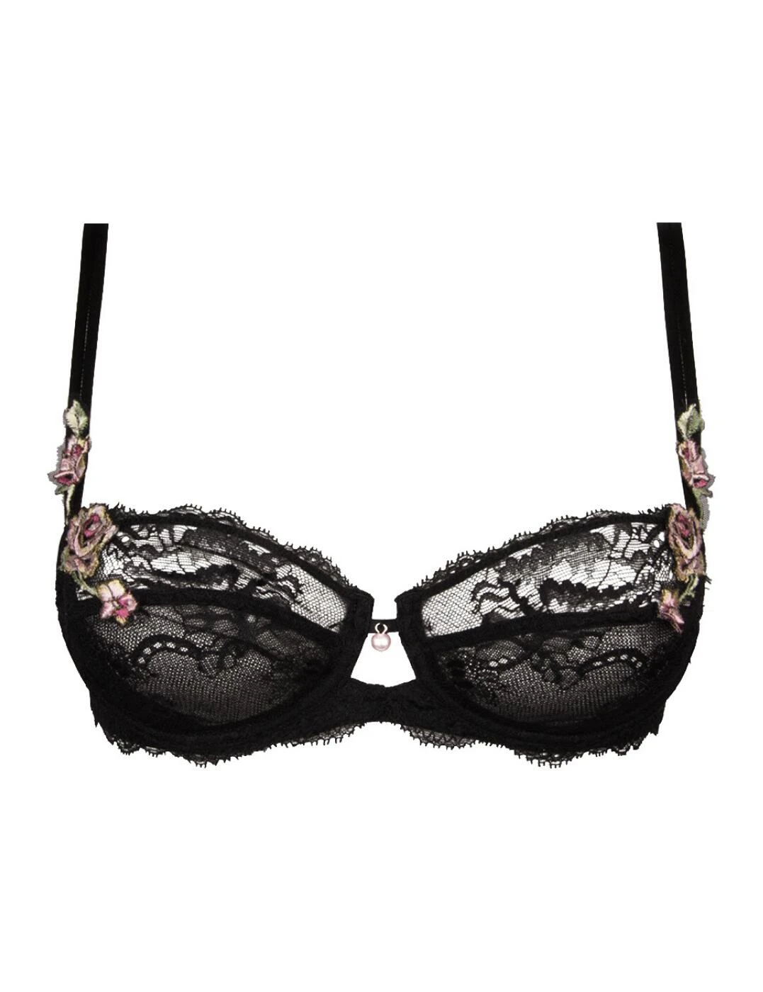 Feel your feminine fantasy with Lise Charmel’s Desir De Roses collection this season. This half-cup bra is adorned with divine rose embroidery on the cups, straps and back of the underband for a beautiful finish to this graceful piece. Cups are non-padded for a natural look to your curves with the underband giving you a lifted look to your bust. This piece features a beautiful gem pendant on the centre of the bust to give a glamourous edge. Fastened at the back with a hook and eye closure with fully adjustable shoulder straps so you can achieve a truly tailored look with this half-cup bra.