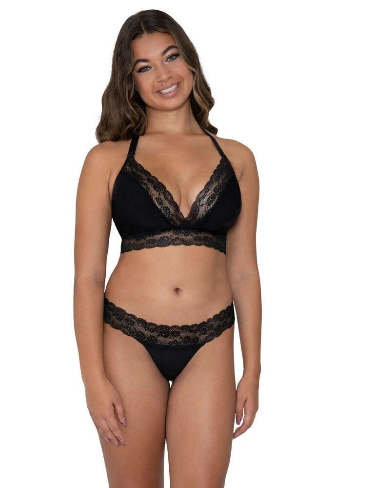 Introducing the new Twice The Fun reversible bralette by Curvy Kate. Crafted from soft materials and decorated with delicate lace. This bralette is reversible and designed without the underwires and padding for a more natural shape and excellent comfort. The low plunge neckline creates a gorgeous cleavage and the fully adjustable straps can be worn as normal or converted into a halterneck or racerback. Pairs perfectly with the matching coordinates for a sexy, yet comfortable look!