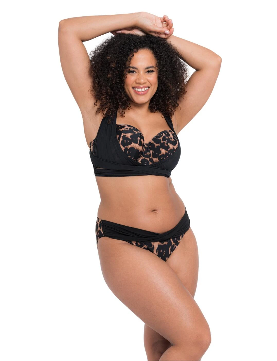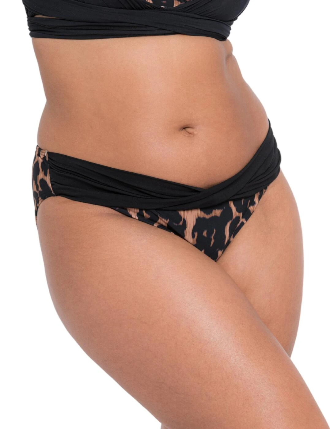 Curvy Kate makes sure that all shapes and sizes look gorgeous on the beach with the Wrapsody collection. Try on these bikini briefs to give yourself a trendy look with the eye-catching animal print and chic ruched material on the front waistband. The classic cut with moderate rear coverage and mid-rise waist gives you a comfortable fit. Match with a bikini top from the Wrapsody range for a fully coordinated look.