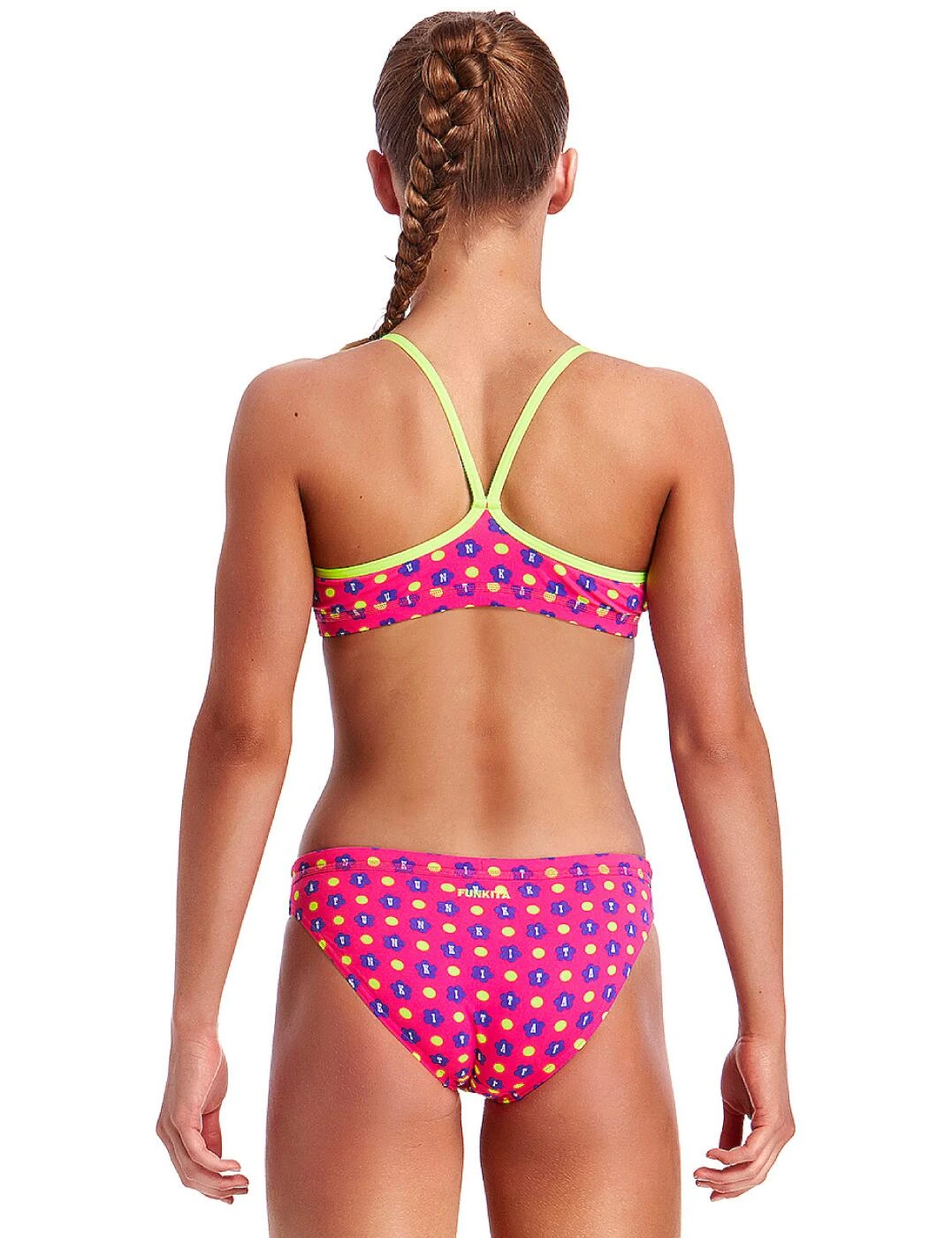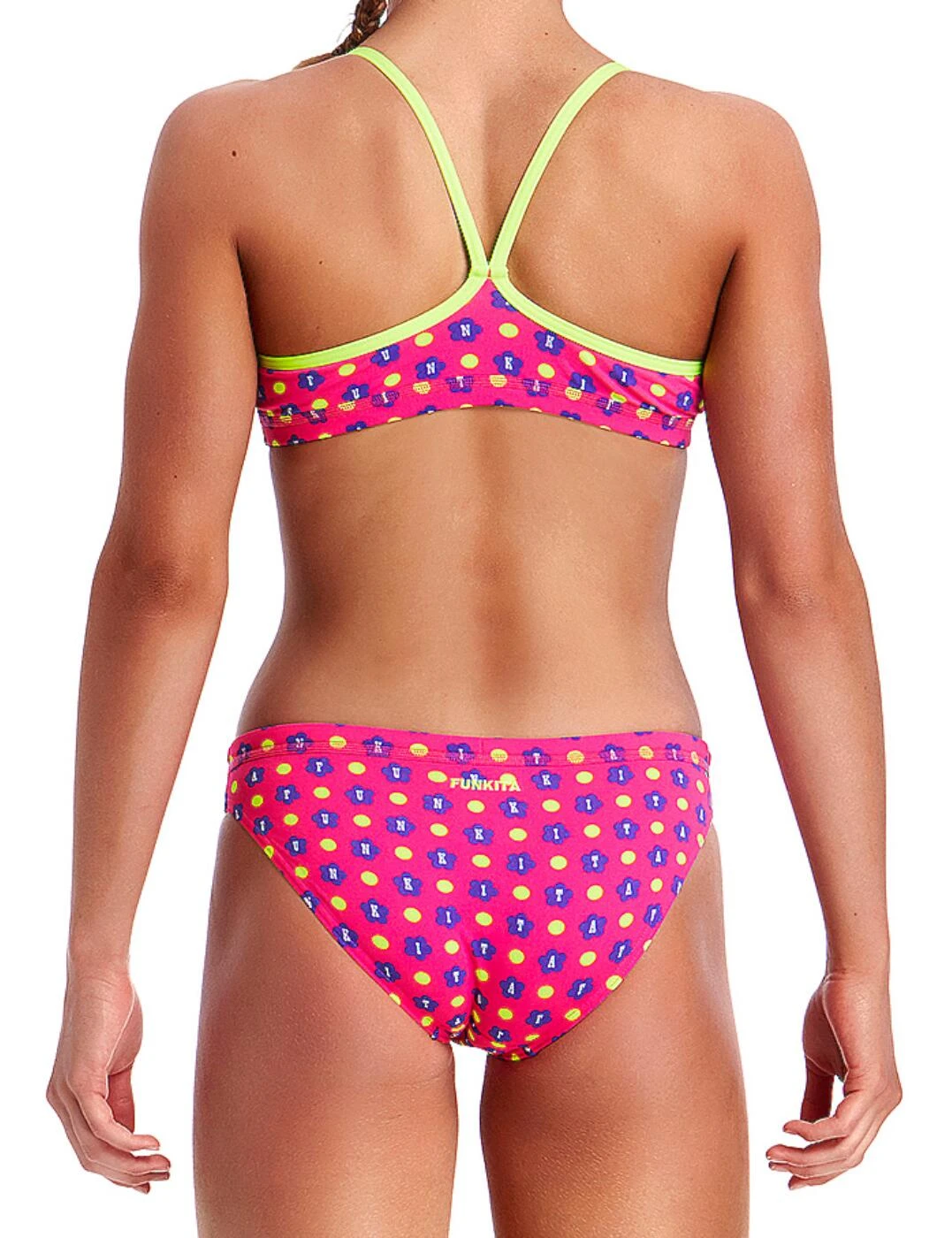 FS02G01982 Funkita Girls Daisy Dots Racerback Two Piece Bikini Set