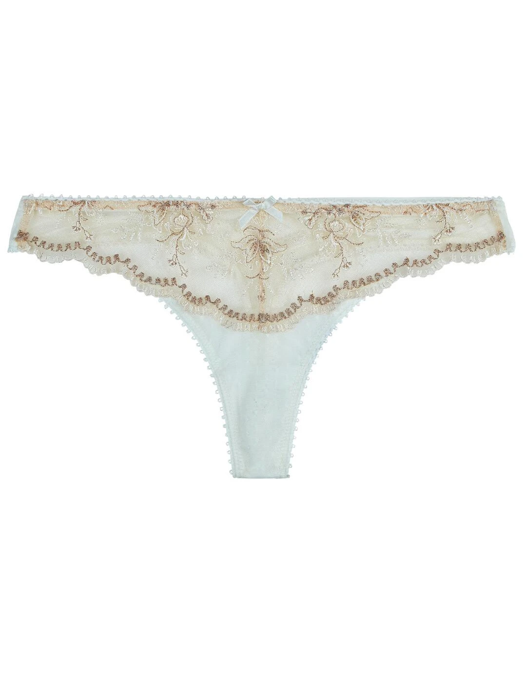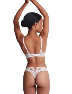 The Tresor Infini collection from Aubade oozes luxury and refinement – an excellent choice if you need some spoiling in your life. These tanga briefs are made to shine with the gorgeous embroidery on the front, thread through with a metallic shimmer. The low-rise waist and minimal rear coverage ensure a seductive and flattering fit. This piece has an elaborate strappy detail on the back, adding another dimension to this gorgeous brief. Wear with matching items from the same line for a full effect of Tresor Infini.