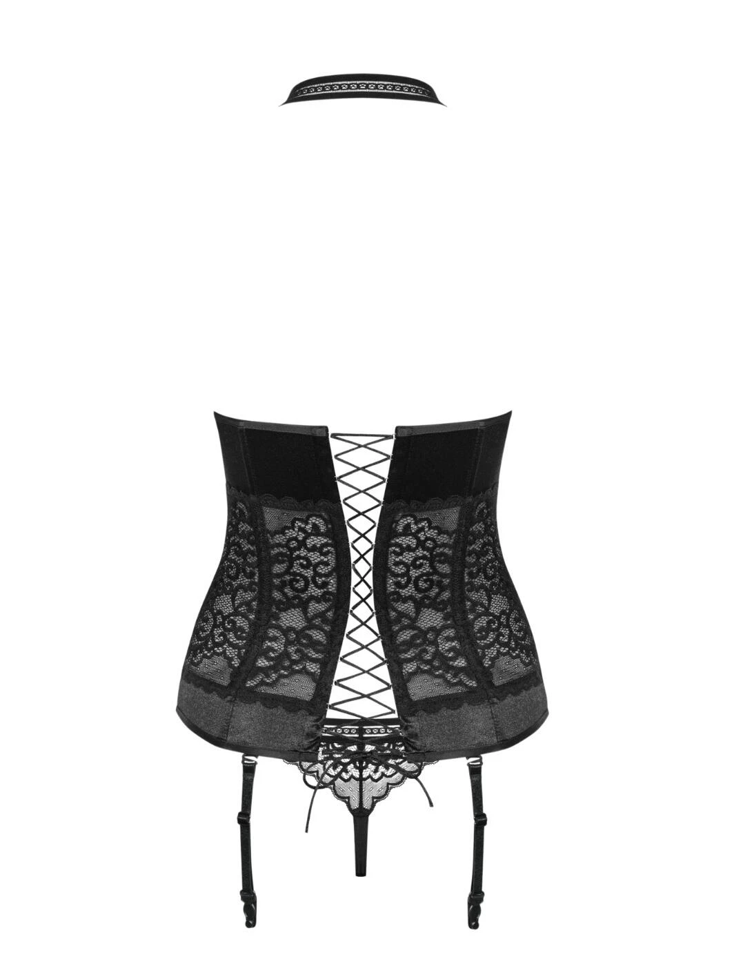 Alluring from all angels Obsessive’s Ailay collection is ready to introduce this irresistible 2-piece set into your bedroom. This set includes both a captivating corset and a daring thong for a complete set. The corset features vertical boning and is secured with a lace-up back detailing to ensure your figure is sculpted and your waist is cinched for a truly sensational fit. Boasts a fully detachable halter strap so this corset enables full versatility so you can tailor the look of this piece entirely to your own preference. The included thong comes in a classic thong cut with a minimalist design.