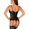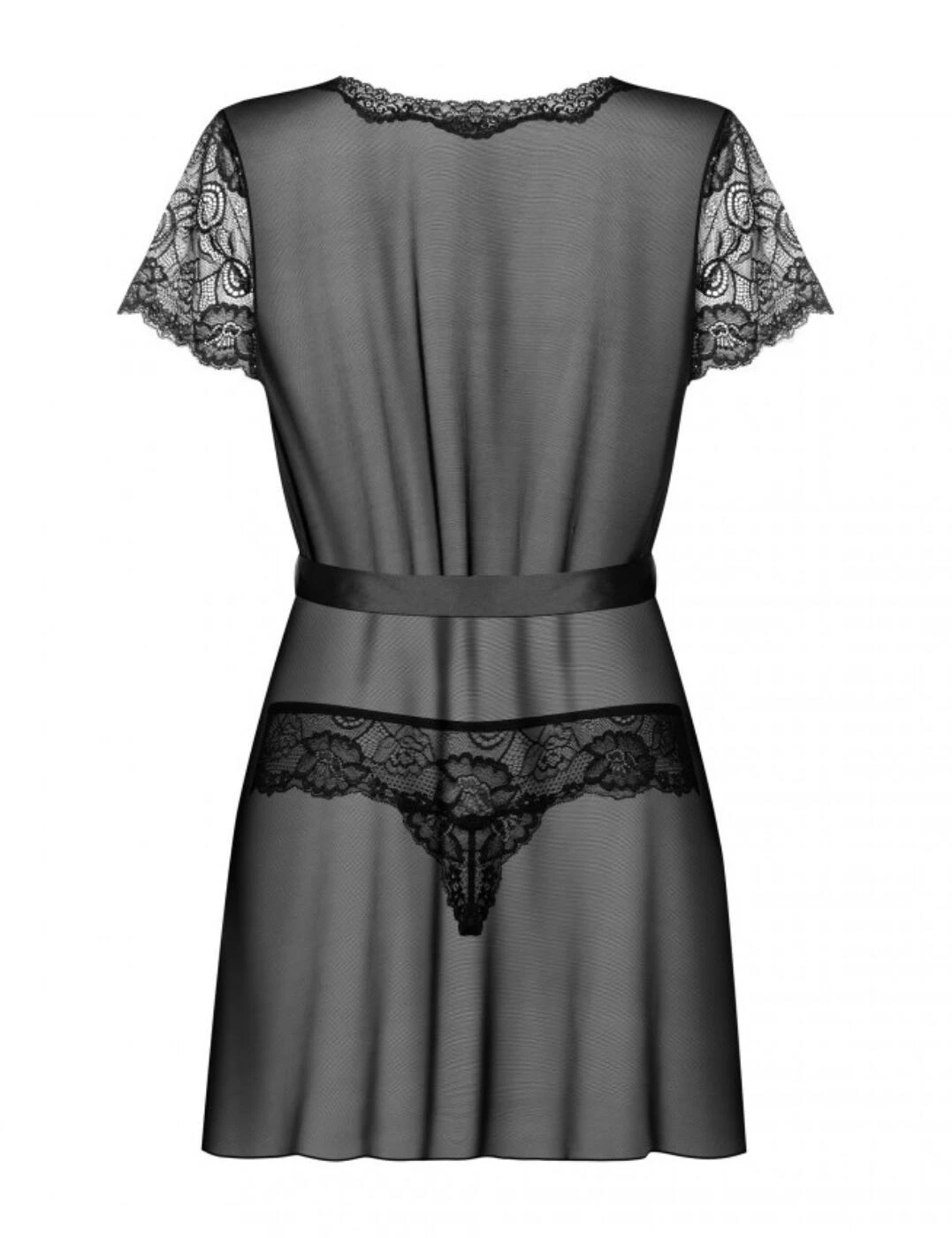 Obsessive is the brand for sensual pieces and the Alluria range brings this peignoir and thong set to help you create the ultimate tempting look. This peignoir features sheer materials all-over with floral lace running down the centre that lays beautifully against your bust as well as being on the short sleeves. The thong also has a delicate lace design on the flattering shape of a low-rise waist and minimal rear coverage. Made complete with a satin ribbon around the waist to cinch in the peignoir.