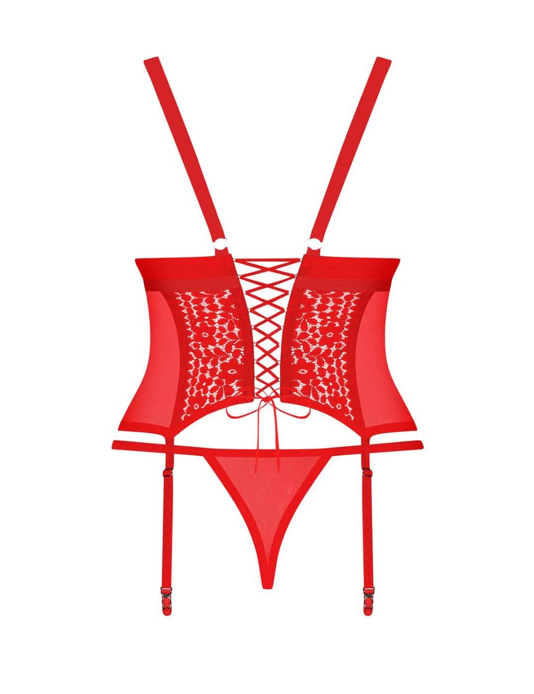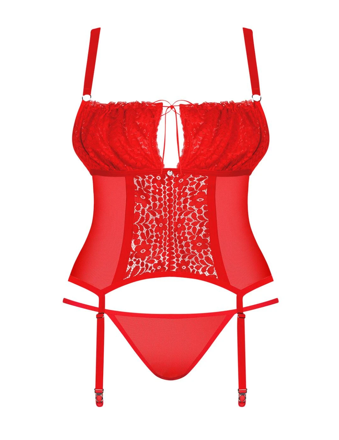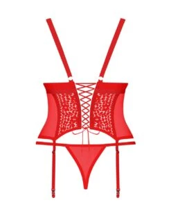 Obsessive brings provocative designs with a refined style with their seductive Blossmina collection this season. This corset and thong set is perfect for elevating those bedroom looks. This corset boasts a classic lace-up back and boning detailing that allows you to cinch and sculpt your figure. Shoulder and garter straps are fully adjustable giving this piece a fully adjustable fit that can be tailored entirely to your own preference. This piece features a self-tie detailing on the bust to gather and enhance your gorgeous cleavage giving a seductive finish to this iconic piece. This set includes a minimalist thong to complete the look.