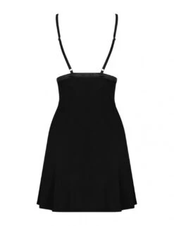 Get your partner’s heart racing in this chemise and thong set from the Cecilla range by Obsessive. This sexy chemise features triangle-shaped cups that are covered in sheer lace that also follows underneath in a triangle shape. The shape of the cups enhances your bust and creates a feminine look. It sits just below the bum which gives the look of longer legs and showcases your gorgeous silhouette. Made complete with a matching low-rise thong.