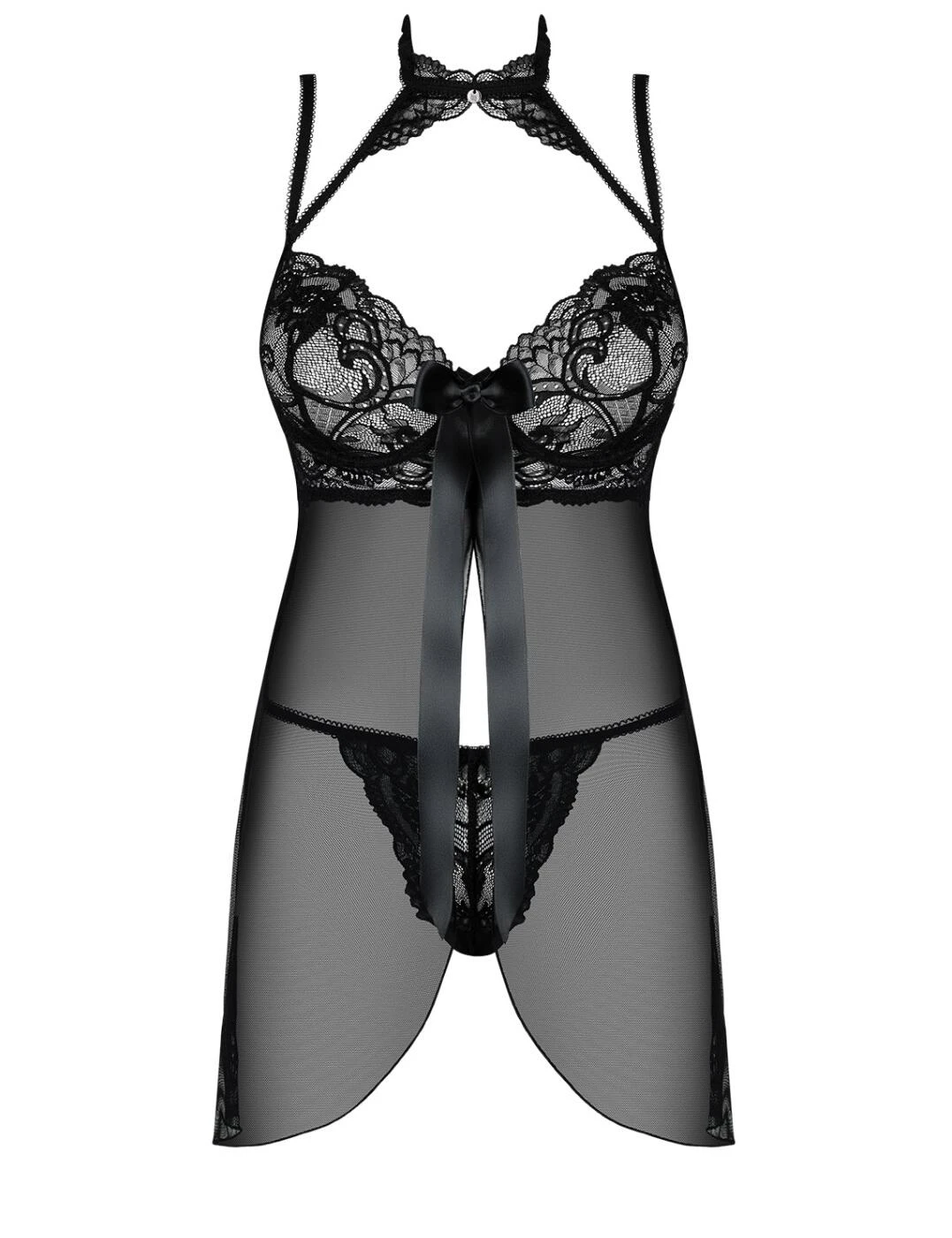 Indulge in this little lacey number from Obsessive’s Elizenes range for a night to remember. Channel your inner temptress with this gorgeous two-piece set of a semi-sheer babydoll and lacey thong. This babydoll is crafted from soft lace and adds a splash of glamour to your gorgeous curves. Features a fiercely sexy choker detailing that is embellished with a mesmerising pendant for an iconic edge to this glamourous piece. Cups are underwired and adorned with a beautiful floral lace detailing. The lace thong boasts a classic thong cut with a low-rise waist for a flirtatious finish to this irresistible set.