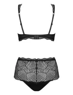 Treat yourself or someone special to this stunning 2 piece of bra and high waist brief set from the exciting Klarita collection by Obsessive. The set flaunts luxurious lace which adorns the plunging neckline and midsection of the brief for an attractive semi-sheer look. Cheeky rear coverage emphasises your alluring curves and the high-waist design creates a flattering effect. The bra features a secure hook and eye closure and adjustable shoulder straps for the perfect fit.