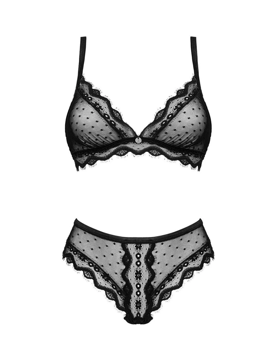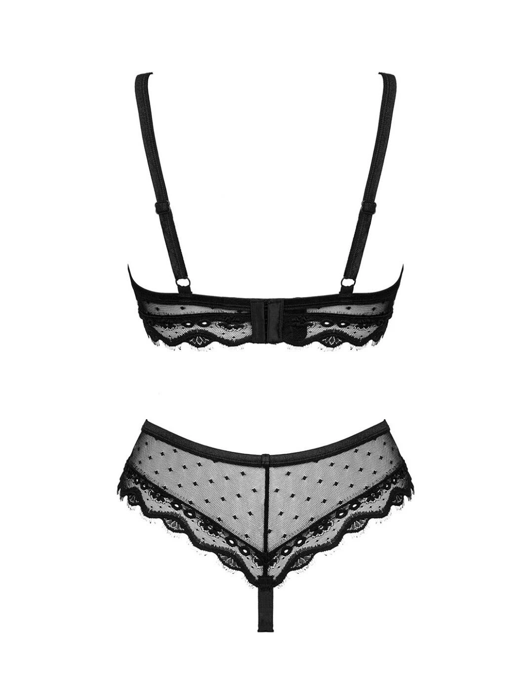Looking for a set that can double up as comfortable everyday wear, yet make jaws drop when the time is right? The Marrbel set from Obsessive is just what you were looking for. The barely-there fit of no underwiring or padding means it fits flawlessly under your clothes and is perfect for those lounging days. A comfortable, soft to the touch material helps makes this piece irresistible for your everyday and for your special times. It transitions perfectly to a night time piece thanks to the sheer mesh styling and alluring eyelash trim that frames your derrière and your cleavage. The brief is a thong, styled with a larger waistband that clings to your figure and accentuate your curves.